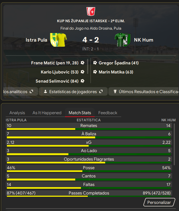 Já com o jogo "perdido", Kamen retorna ao esquema original, mas nada acontece! Mais uma vez o Hum foi vice da Copa Regional da Ístria!