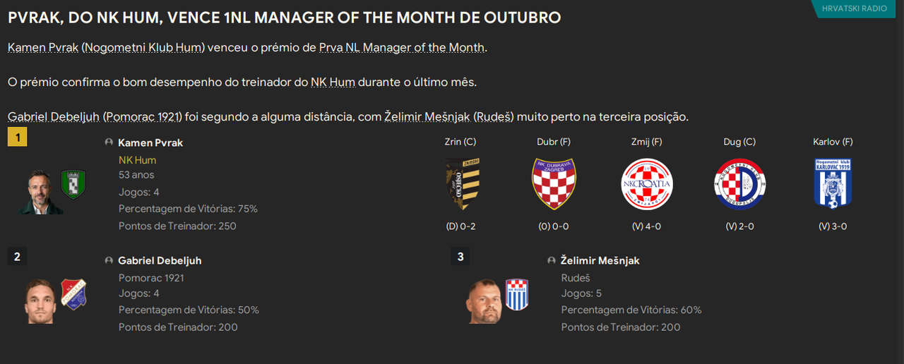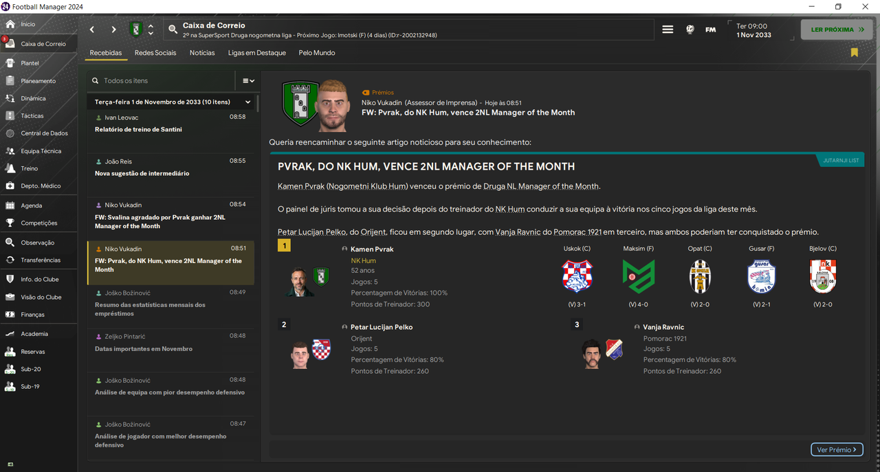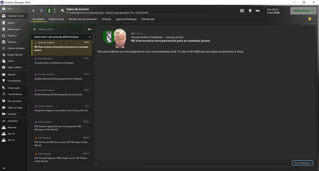 Os últimos acontecimentos foram intensos! O NK Hum finalmente chegou à elite do futebol croata. E nosso jogo de estreia foi contra quem? Eles mesmos...nossos eternos algozes no save o Istra 1961 e...perdemos por 3x1, porém em outubro de 2035, pela Série A finalmente quebramos o jejum e ganhamos de virada 3x2 pra nós...(falei que ganharíamos desses putos, @MitoMitológico