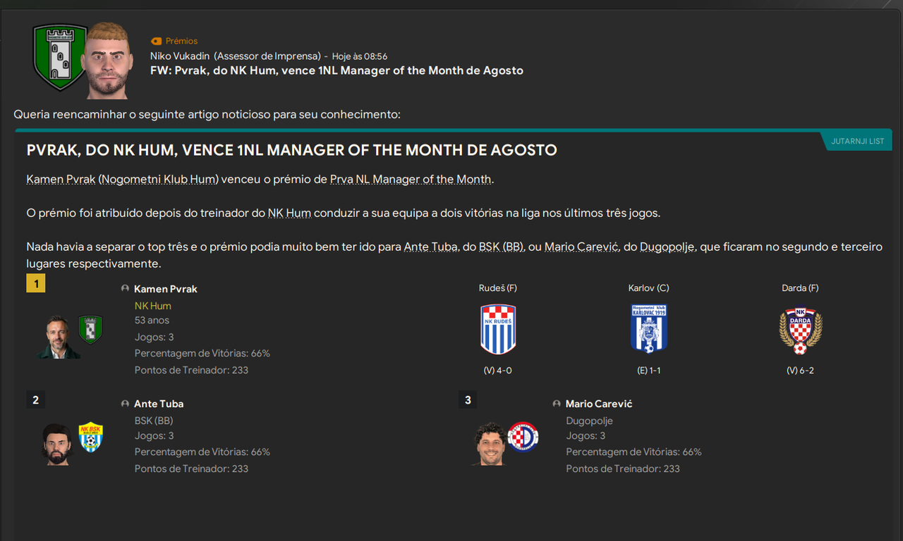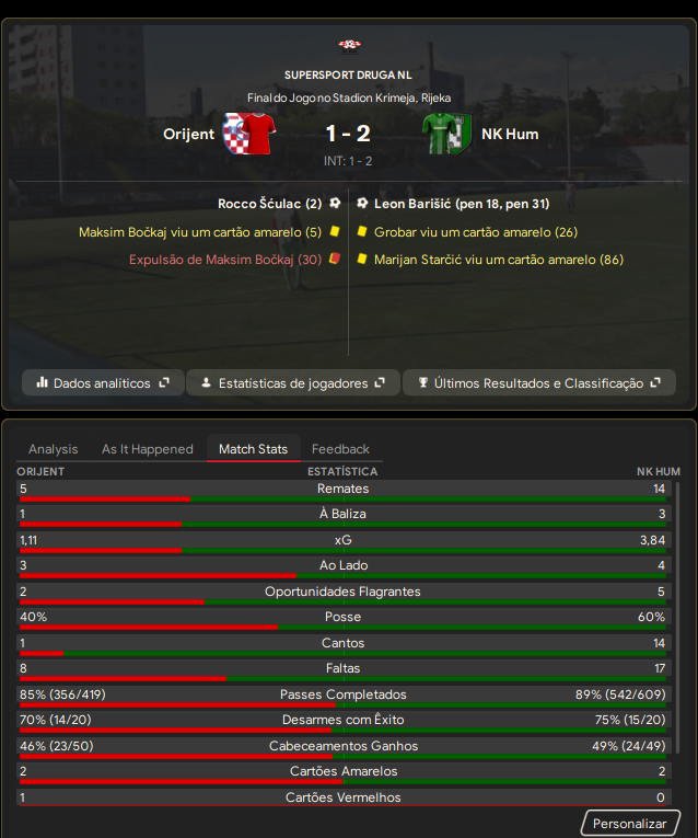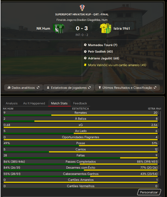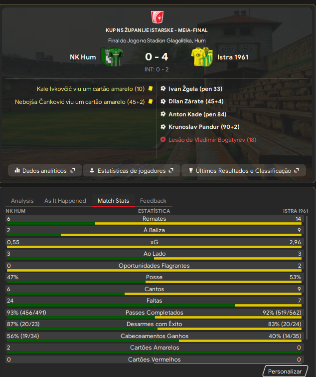 Sigo na torcida pra que o Hum vença o Istra algum dia. Sempre tem uma pedra no sapato em nossa save, tinha um que eu fazia que era o Olaria kkkk