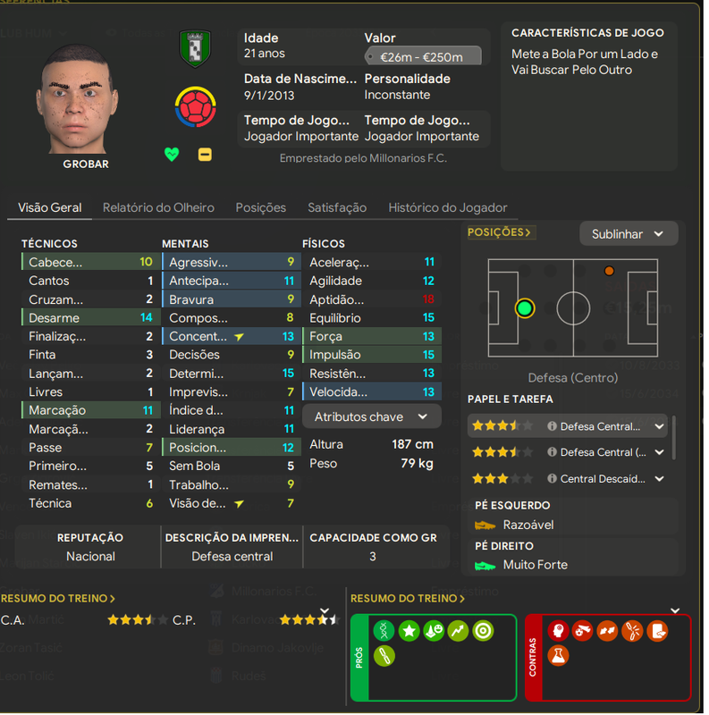 Olha, acho que é mais por conta da "capacidade mental" do elenco do que dos atributos do meu treinador. Atualmente, tenho 17 de Gestão de Pessoal e 20 de motivação.