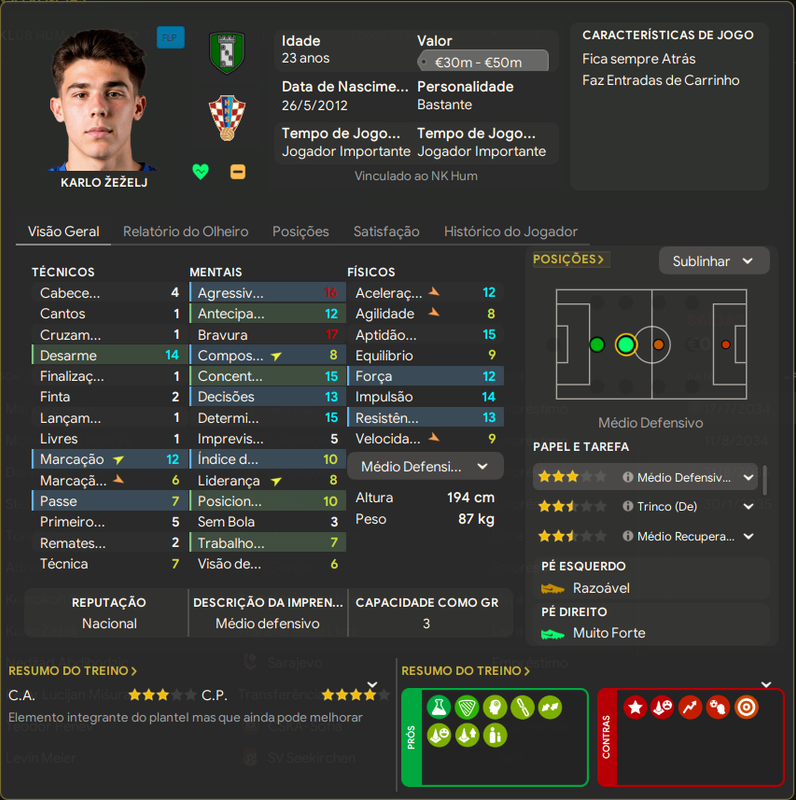 Para o meio-campo, a diretoria conseguiu duas peças-chave: o volante Karlo Zeželj, contratado ao fim de seu vínculo com o Istra 1961 – maior rival do Hum (pelo menos na perspectiva humljani, já que o Istra nunca foi derrotado pelo pequeno clube). Essa transferência, além do reforço técnico (foram 32 jogos e 2 assistências), carregou um peso simbólico: a primeira peça arrancada diretamente do “vizinho gigante”.