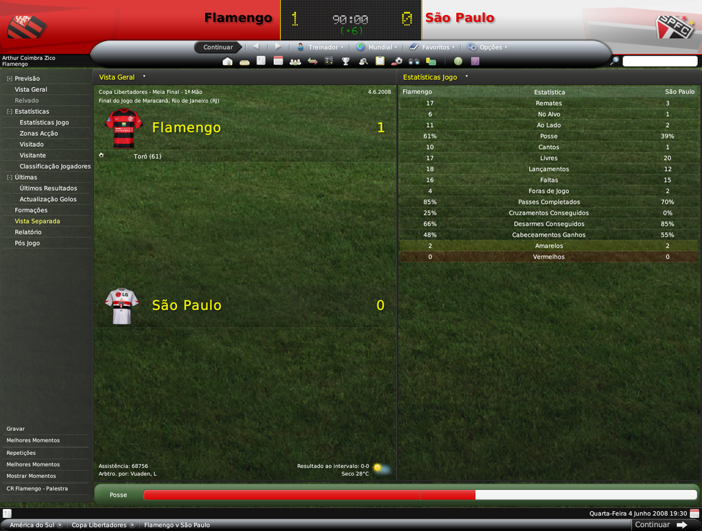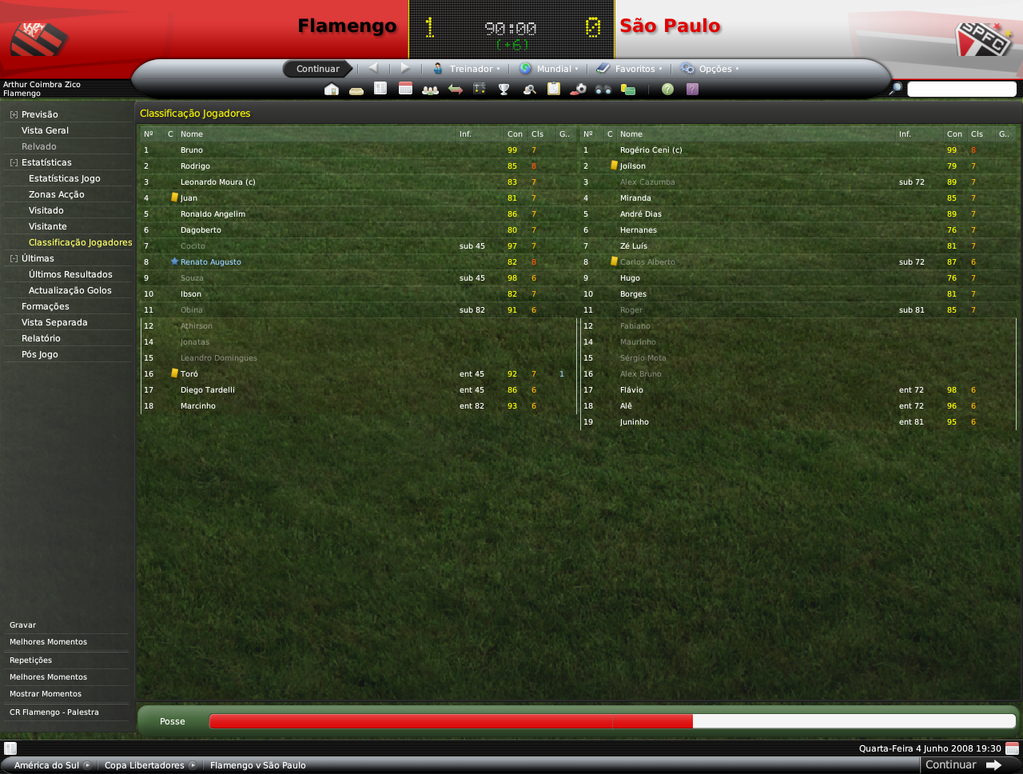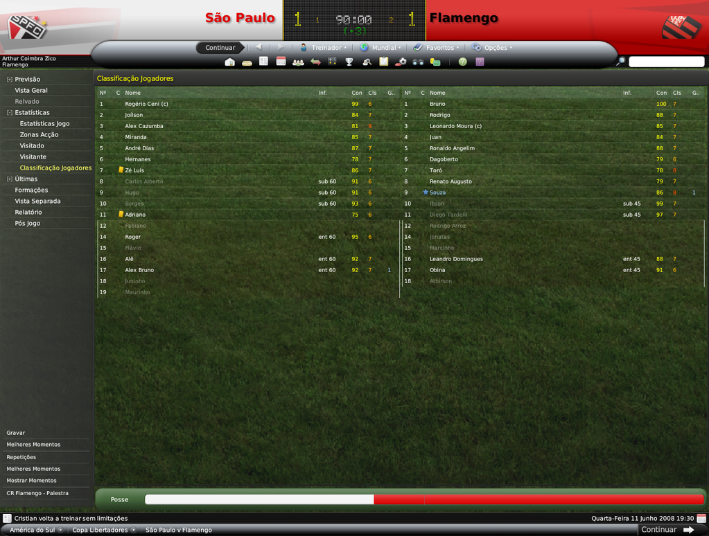 GG. Postado 14 de Julho 2008 Denunciar Postado 14 de Julho 2008 Oi Jiri, perdi um pouco o fio da meada, mas agora já estou em dia. No meu save com o Fla, perdi a semifinal para o SPFC, na 2ª partida.
