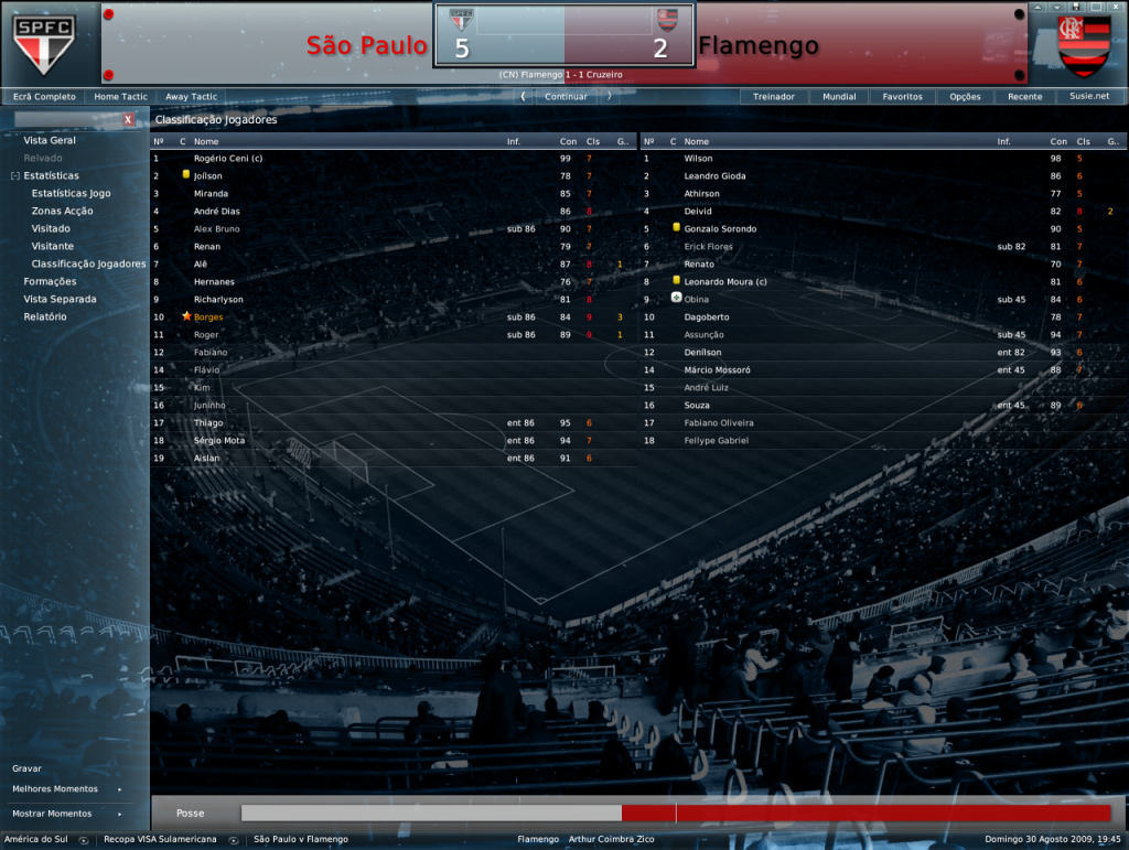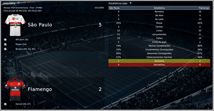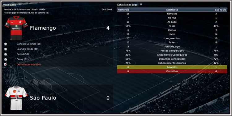 Jirimias Postado 30 de Julho 2008 Denunciar Postado 30 de Julho 2008 21 de agosto de 2009 | 11:20 hs Recopa Sul-americana: Deu São Paulo na primeira partida. A noite foi de Borges!Com três gols do atacante e um de Roger, o São Paulo derrubou o Flamengo com sobra. A diferença de três gols imposta pelo São Paulo, não é de longe um resultado justo, mediante a forma como o Flamengo atuou, e depois da derrota sobrou críticas ao jovem Wilson, que voltava ao gol depois de ter sido barrado também por má atuação no jogo contra o Vitória pelo Brasileirão. Se a investida de Zico na meta não foi feliz, a surpreendente escalação de Erick Flores no lugar de Renato Augusto,contundido; foi acertada.O jovem meia mostrou muita vontade e só não superou o Deivid, que anda fazendo gol de tudo que é lugar. O Flamengo também contou com sua nova contratação, o zagueiro André Luiz, agora contratado em definitivo por R$8,2M Para o segundo jogo, o Flamengo precisa marcar 3 gols para levar a partida para as penalidades, infelizmente o ataque ainda não contará com Ronaldo que se recupera de uma lesão no tornozelo sofrida no mês passado e com Souza que sofre de virose. 27 de agosto de 2008 | 09:20 hs Recopa Sul-Americana: Flamengo consegue o impossível no Maracanã. E o Flamengo garantiu mais um título, a Recopa Sul Americana.A torcida era a única que acreditava no título depois da goleada no primeiro jogo, e a força que veio das arquibancadas moveu o time do Flamengo para frente.Dessa vez,Zico não poupou Erick Flores, apesar do bom jogo em São Paulo.O Galinho temeu que o jogador sofresse com a pressão da torcida.Sem Erick Flores e com Fellype Gabriel, o Flamengo jogou no ritmo da torcida ,pressionando muito o São Paulo. Aos 10 minutos, o zagueirão Sorondo cabeceou bem a bola cruzada na falta batida por Renato, era o primeiro gol.O gol do zagueiro foi o único do Flamengo na primeira etapa, muito pouco para um time que queira golear. Aí Zico não mexeu no banco, mas mexeu no brio dos jogadores.O Galinho pediu paixão aos jogadores, e deu resultado.Logo aos 3 minutos, Gioda escora cobrança de escanteio da direita e aumenta.Cinco minutos depois, é a vez de Deivid ampliar de fora da área.Com 3x0, o Flamengo já empatava a série, mas para evitar qualquer tipo de emoção forte, Obina deu números finais a partida.Final:Flamengo 4x0 São Paulo. Flamengo Campeão da Recopa Sul-americana.. Paulo Autuori foi demitido do cargo de treinador do São Paulo depois desse fracasso.Erick Flores, teve outro motivo para comemorar, foi escolhido melhor jogador da competição, jogando apenas uma partida. [ Comentar ] [ (1) Comentário ] [ Imprimir ] Comentaram: Macedo – Mengão virou! Que título!Valeu,Mengão!!!!Como cansa ser campeão hushaushua!