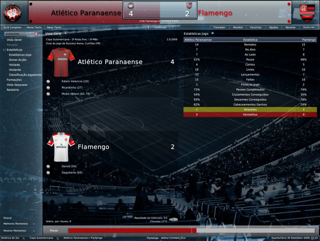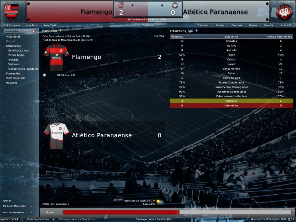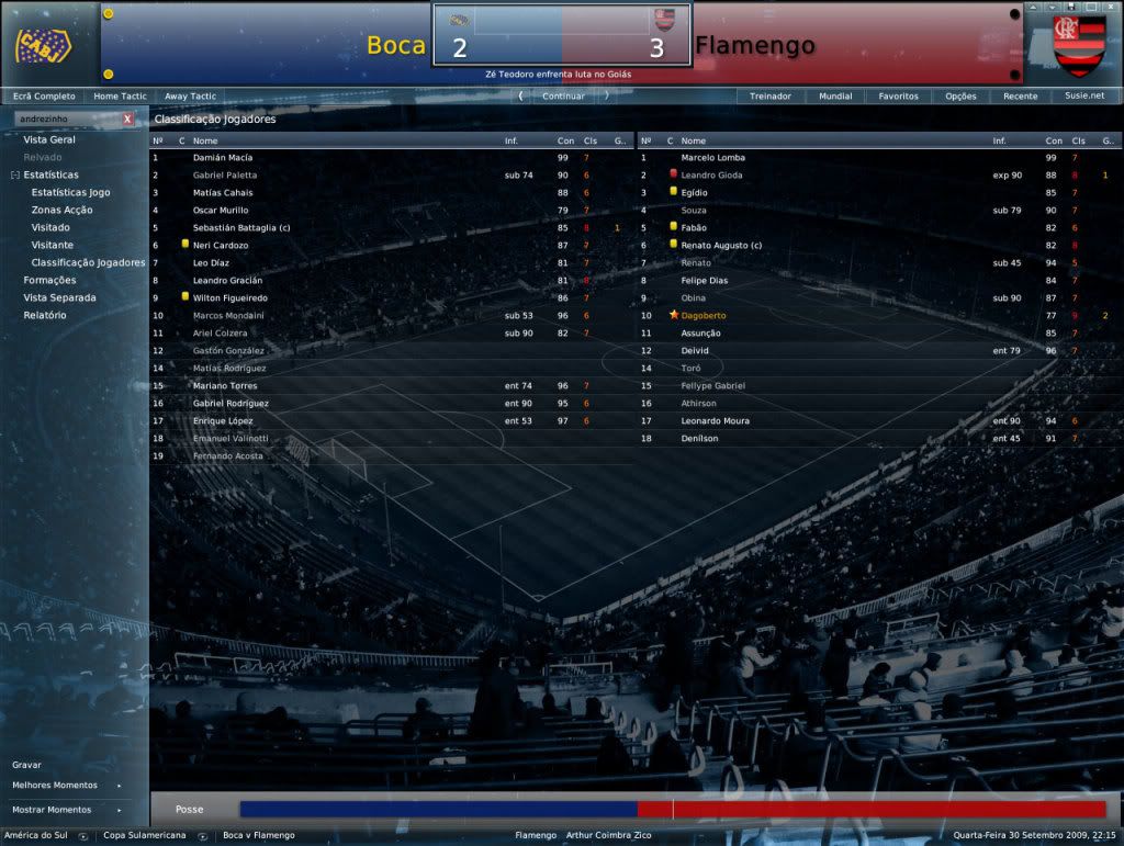 Jirimias Postado 31 de Julho 2008 Denunciar Postado 31 de Julho 2008 24 de setembro de 2009 | 15:20 hs Copa Sul-Americana: Maracanazzo!!!!. 1ºPartida 2º Partida Para enfrentar o Boca na próxima fase, o Flamengo teve que suar muito para eliminar o Atlético Paranaens(1º partida | 2º partida , a conquista da vaga só foi obtida graças ao critério de gols marcados fora de casa. Agora pela frente o Flamengo tinha um Boca Jr. ainda com sede vingança pela perda do título na final da Libertadores de 2008. Na primeira partida, o Flamengo conseguiu a façanha de vencer os hermanos em pleno La Bombonera por 3x2, em um grande dia de Dagoberto.Na oportunidade, Gioda havia sido expulso nos instantes finais da partida, o que naquele momento não atrapalhava o Flamengo. A situação era bem diferente desta vez, não havia mais a responsabilidade de decidir em casa.Talvez o que faltou ao Flamengo foi realmente responsabilidade para o 2º jogo. Logo no começo da partida já podia concluir-se que a expulsão de Gioda pode não ter causado nenhum efeito adverso lá em Buenos Aires, mas no Maracanã... como ele fez falta.Sem André Luiz, que não foi inscrito, Sorondo teria a companhia de Fabão, que há algum tempo não jogava. Bataglia, o nome do Boca e do jogo, fez o que queria com a defesa do Flamengo.O Boca foi melhor indiscutivelmente e merecia a vitória.Quando o jogo estava em 3x2, resultado que levaria a partida para as penalidades, o Flamengo cresceu para resolver a partida no tempo final, mas o quarto gol dos argentinos foi o suficiente para desmanchar qualquer reação. A torcida com certeza queria mais este título, mas incentivou a equipe. Os próximos confrontos da Sul-Americana 01 de outubro de 2009 | 19:50 hs Brasileirão: Novo tropeço afasta o Flamengo da liderança. É hora de má fase, e veio na pior hora.Depois da eliminação da Sul-Americana para o Boca Jr. , o Flamengo pegou o gosto pelo desastre, e conseguiu perder em casa para a Portuguesa. De volta ao Maracanã, agora contra a Ponte Preta, atual 13º colocada, o Flamengo manteve a má fase e não conseguiu vencer e por pouco não foi surpreendido.Para mudar esta situação, Zico vai ter que se virar com o que tem, já que a janela de transferências fechou há alguns dias.Fala-se em Marcelinho Paraíba, para ocupar a última vaga de não-flamenguista, como o jogador está sem contrato poderá reforçar o time ainda este ano.Sò que Marcelinho tem 34 anos e está longe de sua forma ideal. O Cruzeiro segue líder com 5 pontos de diferença para o Flamengo, que por sua vez, é terceiro com um jogo e um ponto a menos que o segundo colocado Fluminense. Outros jogos Classificação Números do Campeonato Brasileiro [ Comentar ] [ (0) Comentário ] [ Imprimir ] Comentaram: