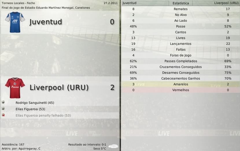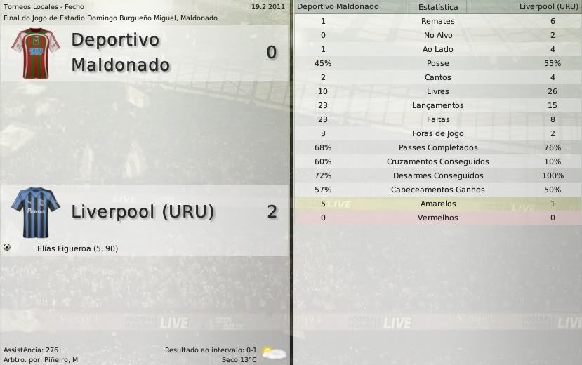 gq-tricolor Postado 29 de Setembro 2008 Autor Denunciar Postado 29 de Setembro 2008 Español | English | Português 2 de março de 2011 A primeira vez a gente nunca esquece "Foi maravilhoso, a coisa é diferente na Libertadores" O primeiro jogo do Liverpool na Libertadores foi assistido por mais de 40 mil pessoas no estádio Morumbi, em São Paulo. Com certeza na memória dos torcedores negriazules essa estréia não vai ficar marcada com o sentimento de derrota, mas com o de vitória. Da multidão que acompanhou o jogo no estádio, 500 eram torcedores do Liverpool que vieram em vários ônibus fretados pelo clube. "É diferente" - disse, emocionado ao entrar em campo, o jogador Elías Figueroa. E foi mesmo. Todos esperavam uma vitória com folga a favor do São Paulo, mas o que se viu foi um jogo parelho em que a vitória poderia ter sido para qualquer um dos dois clubes. E o único gol da partida foi marcado por Roger, o artilheiro são-paulino, após um bate e rebate na área em que o goleiro Frascarelli falhou porque estava mal posicionado no momento do chute do atacante. O jogo foi bem corrido, ora viamos o São Paulo atacando, ora o Liverpool. Era um tomá-lá-dá-cá geral. E no fim, após o apito final, Figueroa disse o que praticamente todos os torcedores do estádio e a imprensa no geral deve ter pensado: "Podíamos ter ganho, infelizmente tomamos o gol muito cedo e perdemos, agora é pensar no Danubio". Na chegada à Montevideu, o técnico Alvarado falou com a imprensa: "Estou orgulhoso do grupo, lutou até o fim com um time que é atualmente muito forte. Até podíamos ter saído com a vitória, mas o futebol é assim, todos sabemos." - respondeu Alvarado sobre o jogo. Ao ser questionado sobre a estréia do Liverpool numa competição internacional ele disse: "É minha primeira vez como técnico, já joguei se não me engano três partidas pela Libertadores e foi com o Peñarol. Eu sei que para esse grupo, jogá-la é muito importante. Foi maravilhoso, a coisa é diferente na Libertadores" Assista ao jogo Nessa primeira rodada o Liverpool terminou em último no grupo F, atrás de Nacional e Blooming que pontuaram no empate por 2 a 2. No domingo que passou saiu a lista dos jogadores do Liverpool inscritos na Libertadores, dê uma olhada e veja se gostou ou não: Se o Liverpool está em último no grupo F da Libertadores, no Campeonato Uruguaio a situação é completamente diferente. Com três vitórias consecutivas o time de Alvarado vai liderando isoladamente à frente do Danubio, segundo, e do Peñarol, terceiro. Na tabela de pontuação geral o Liverpool galgou posições e agora está em terceiro. Deportivo Maldonado 0 x 2 Liverpool - Figueroa(2) Domingo Burgueño Miguel, Maldonado Liverpool 3 x 0 Cerro - Abél Hernández, Ernesto Goñi(contra) e Aníbal Hernández(contra) Belvedere, Montevideu Juventud 0 x 2 Liverpool - Sanguinetti e Figueroa Eduardo Martínez Monegal, Canelones Copa Libertadores São Paulo 1 x 0 Liverpool - Roger Morumbi, São Paulo Citar