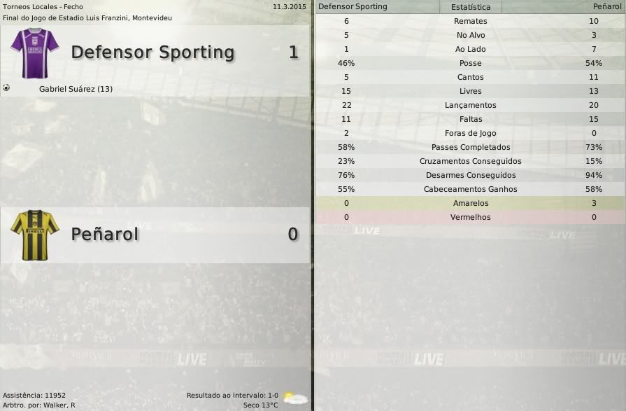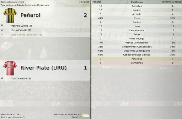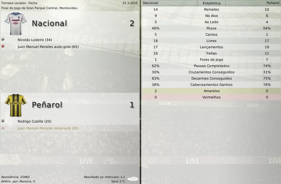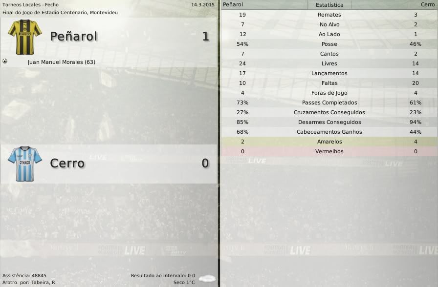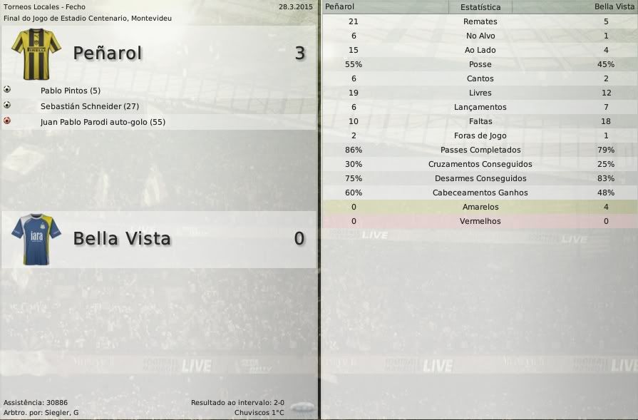 gq-tricolor Postado 21 de Novembro 2008 Autor Denunciar Postado 21 de Novembro 2008 Español | English | Português 5 de abril de 2015 Cubilla faz dois e acaba com série invicta dos cebritas Agora os aurinegros ocupam o segundo lugar no Clausura e continuam perseguição ao líder Liverpool Cubilla precisou de dez minutos para fazer o primeiro e depois botar o Peñarol na frente do placar novamente. Um jogo corridíssimo, a bola estava inquieta, corria de lá para cá. E só no fim o Miramar fez pressão sobre os carboneros chutando inclusive duas bolas nas redes pelo lado de fora do gol. "Saímos daqui com mais três pontos e lutaremos para colocar o Peñarol no topo da classificação e para isso o Liverpool precisa dar uma mãozinha e nós vencermos eles lá no Belvedere" - declarou ao fim do jogo o autor dos gols do clube visitante. A rodada desse fim de semana foi de fortes emoções. E vai ficar marcada pelo jogo de 12 gols disputado entre Cerro e Fénix. Haja coração! Sábado, 4 de abril Hoje, domingo, 5 de abril A luta pelo título ficou acirrada. O Peñarol pulou para a segunda colocação e está atrás do Liverpool, líder com 25 pontos. Compare os últimos jogos dos dois principais candidatos ao título do Uruguaio 2014/20015: Depois de uma seqüencia turbulenta com derrotas para dois rivais Defensor e Nacional, ambos os jogos fora de casa, o Peñarol oscilou, caiu na tabela, mas com a vitória de hoje segue firme rumo ao título nacional. Para isso será fundamental vencer o Liverpool no Belvedere. Note que o Peñarol está empatado em número de pontos com mais três equipes, que também não desistiram do campeonato. Defensor Sporting 1 x 0 Peñarol - Suárez Luis Franzini, Montevideu Peñarol 1 x 0 Cerro - Morales Centenario, Montevideu Nacional 2 x 1 Peñarol - Lodeiro e Morales(contra) / Cubilla Gran Parque Central, Montevideu Peñarol 3 x 0 Bella Vista - Pintos, Schneider e Parodi(contra) Centenario, Montevideu Miramar Missiones 1 x 2 Peñarol - Rodríguez / Cubilla(2) Luis Méndez Piana, Montevideu Citar