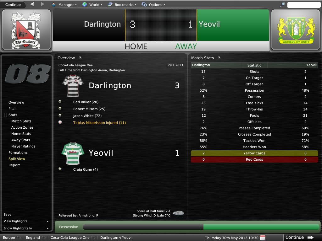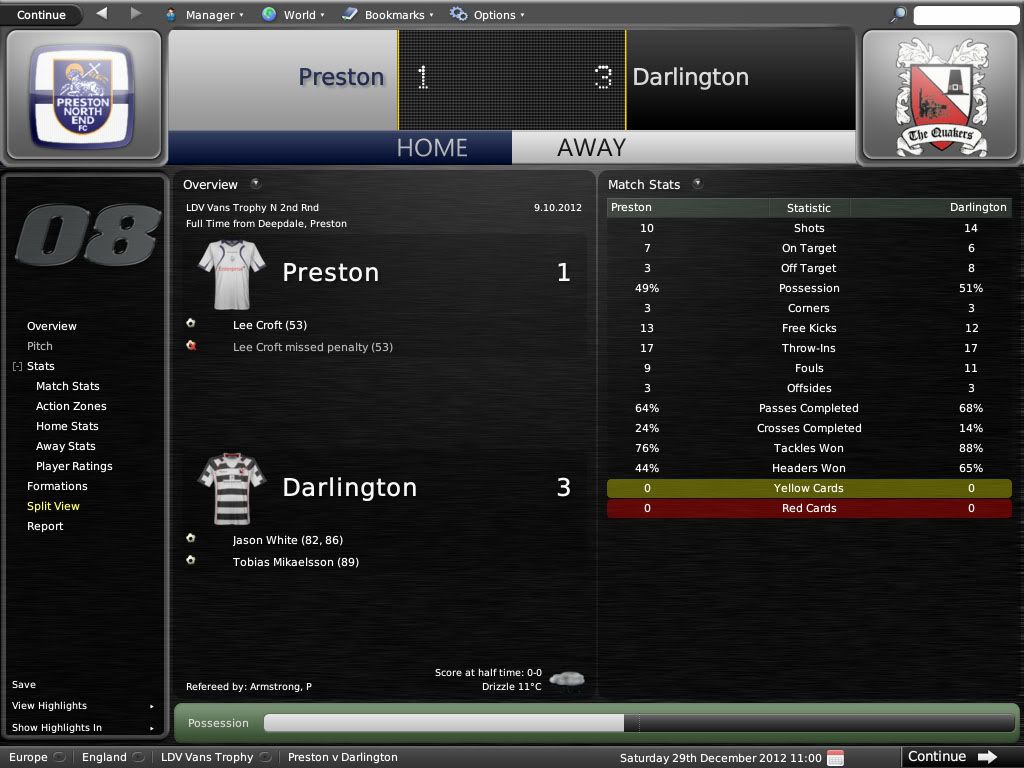 Vice-Presidente Henrique M. Postado 7 de Setembro 2008 Autor Vice-Presidente Denunciar Postado 7 de Setembro 2008 faz histórico mesmo.. vai ficar bacana Também acho. Achei bem legal :D Valeu. O time parece que pode dar luta a subida, mas sera deveras complicado. Também acho, mas nada é impossível. Minha carreira como treinador não se movimentou, mas acho que o desafio dessa temporada pode fazer o fogo do inicío da temporada arder de novo. O máximo que aconteceu, foram Bohemians e Derry City querendo que eu voltasse para a Irlanda, o que eu neguei prontamente. Ao contrário da temporada passada, quando fomos até a segunda rodada da Carling, enfrentando adversários notoriamentes superiores, ao enfrentarmos alguém de mesmo nível e não resistimos, perdemos para o Hull City dentro de casa, por 2 x 1, mas a grande nota é que a equipe se entregou e lutou bastante, saimos de cabeça erguida da competição. Na FA Cup conseguimos ir mais longe, melhorando a campanha do ano passado. Na 1ª rodada precisamos de um replay para decidir quem se classificava, após o empate em casa. O jogo começou mal, em 16 minutos de jogos já estavámos com 2 x 0 nas costas e eles ainda haviam perdido um pênalti, mas a equipe não mudava de postura, no segundo tempo, as coisas melhoraram para o nosso lado e só nos 10 minutos finais é que a equipe passou a crescer de verdade e assim conseguimos empatar a partida e forçar a prorrogação, que terminou como havia começado, nos pênaltis a coisa foi favorável ao nosso time 4 x 3. Na 2ª rodada, jogaríams o 1º jogo em casa, mas dessa vez o que restou foi o adeus, nem uma nova tentativa nos foi dada, o Carlisle nos venceu por 1 x 0, mas o triste de tudo isso é que a expulsão de um de nossos jogadores acabou com todas as nossas esperanças ainda no 1º tempo, pois se com 11 já tava difícil, com 10 então, ficou impossível, mas ao menos nos tentamos. Diferentemente da temporada passada, em que fizemos uma campanha horrorosa, sendo eliminados na 1ª fase (esse torneio é o mesmo que o LDV Trophy) estamos fazendo bonito na competição. Estamos entre os 4 melhores clubes da competição e temos amplas chances de colocar um troféu em nossa galeria e eu espero conseguir. Nossa jornada começou contra o Walsall e teve fortes emoções, como é de praxe, saímos perdendo e só fomos buscar no segundo tempo, a capacidade de reação da equipe é boa, mas às vezes eles precisam de uma chacoalhada no adversário. O jogo foi bem parelho, qualquer um poderia ter levado a vitória para casa, mas como os pênaltis são uma loteria, meus jogadores foram bem e vencemos por 4 x 3 nas penalidades máximas. Na 2ª fase pegamos um adversário mais osso duro, ao menos no papel. E ele acabou até sendo mais complicado, mas uma brilho tremendo na parte final do jogo acabou com a festa dos adversários. Eles saíram na frente após o jogador pegar o rebote do pênalti que havia desperdição, mas novamente, nos 10 minutos finais mostramos nossas garras e White(2x) e Mikaelson deram um fim na festa do Preston e nos colocaram nas Quartas por 3 x 1. Nas Quartas-de-finais enfrentamos o Chesterfield, que já era um velho conhecido da casa. O Chesterfield não ficou com a vaga, mas ao menos seus torcedores viram um espetáculo e apesar de terem saídos tristes do jogo, talvez um dia, quando estiverem com as retinas fadigadas, eles relembrem da magia que foi esse jogo foi. Em 15 minutos eles fizeram 2 x 0, mas até o fim do 1º tempo corremos atrás e fomos para os vestiários com o placar igualado, mas no segundo tempo a história foi diferente, graças a expulsão de um jogador deles, marcamos mais 3 gols e eles mais um, no fim, uma vitória magistral por 5 x 3. Nas semi-finais iremos enfrentar o Lincoln City e esperamos repetir o bom futebol dessas partidas. As coisas pareciam mais promissoras no começo da temporada, agora que chegamos ao meio do ano as coisas ficaram mais claras e realmente, nossa real condição deve ser uma variação entre as posições de meio da tabela, pois parece que a equipe não tem condições de manter uma boa sequência de jogos, mas felizmente, eles tem a noção de que dão conta do recado. Tiveram jogos em que precisaram de quedas dentro da área para sermos derrotados, foi com dois pênaltis que o Bury nos venceu por 2 x 1. Em algumas ocasiões fomos presas facéis, como na derrota por 2 x 0 para o Coventry, em outras ocasiões nosso futebol era vistoso, como nas goleadas por 4 x 0 em cima de Bristol Rovers e Leyton Orient. Também precisávamos de muita garra, nem sempre ganhamos, como no caso da derrota por 2 x 1 para o Huddersfield, mas havia casos em que funcionava, como na vitória por 1 x 0 sobre o Preston.E até conseguimos uma ajudinha da arbitragem, como na vitória por 3 x 2 sobre o Watford, que só aconteceu graças a uma expulsão. A classificação nos coloca em 16º, mas o fato curioso é que estamos há 10 pontos da zona de playoffs e 10 pontos da zona de rebaixamento, ou seja, qualquer sequência de vitórias ou derrotas pode definir nosso destino. P.S: O calendário era muito grande para ser postado. Citar