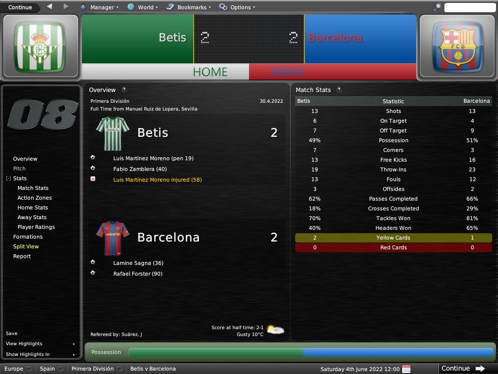 Vice-Presidente Henrique M. Postado 5 de Outubro 2008 Autor Vice-Presidente Denunciar Postado 5 de Outubro 2008 Nada apareceu para mim e também era de se esperar, já que acabei de ingressar no Betis e só devo sair se a diretoria desse clube alviverde for igual a do PSG. Peguei o time mal das pernas, última colocação, ataque fraco, defesa idem, ousei, montei um 4-3-3 e fui pra cima, deu certo, salvei a equipe e terminei com o 4º melhor ataque da competição, não fossem alguns erros bobos, talvez eu tivesse pegado a vaga na Intertoto, mas eu empatei demais e perdi pontos importantes nos minutos finais. Na Copa do Rey, eu terminei o serviço contra o Espanyol, fizemos 2 x 1, mas a vaga já era praticamente nossa, pois havíamos vencido o primeiro jogo por 2 x 0. Na fase seguinte, um clássico da cidade, Sevilla x Betis, o 1º jogo foi na casa deles e perdemos por 5 x 3 e precisaríamos de 2 x 0 para nos classificarmos, bem, consegui só 1 x 0 e demos adeus a competição. Já pela La Liga, conseguimos resultados fantásticos e proporcionamos espetáculos, vencemos Osasuna e Cádiz, sem ter dó do adversário, 5 x 1 contra o time de vermelho e 8 x 1 para o cima do de amarelo. Íamos ganhando o jogo contra o Barça e perdemos os pontos no final, 2 x 2. Contra a Real Sociedad, sofremos do nosso próprio veneno, sofremos 5 gols, mas para não perder o costume, anotamos 3, 5 x 3 para um grande jogo. Por fim, encerramos a competição em 12º lugar, se a diretoria me der um dinheirinho, posso arrumar uma vaga na Copa da Uefa, ao menos na próxima temporada. Bem, o clima de Copa do Mundo está no ar, tive que cortar 3 jogadores dos tradicionais 26 que levo para as Eliminatórias/amistosos. Não foi tão difícil, pois sempre eu levava alguns jogadores só para enxer o elenco mesmo, o grande problema foi na hora de escolher os 3 goleiros, eu tenho 1 goleiro que considero titular absoluto e outro que considero 3º goleiro e sempre fiquei em busca de um 3º goleiro, para não me comprometer, convoquei um jogador acima dos 30 anos, Remy Riou, para me dar mais segurança caso aconteça ao Nogueira. Os grandes nome desse time são Yoann Cissé, Maxime Humbert e Grégory Fabien. Iremos enfrentar Paraguai, Itália e Honduras e espero sinceramente, que esse seja a Copa. Citar