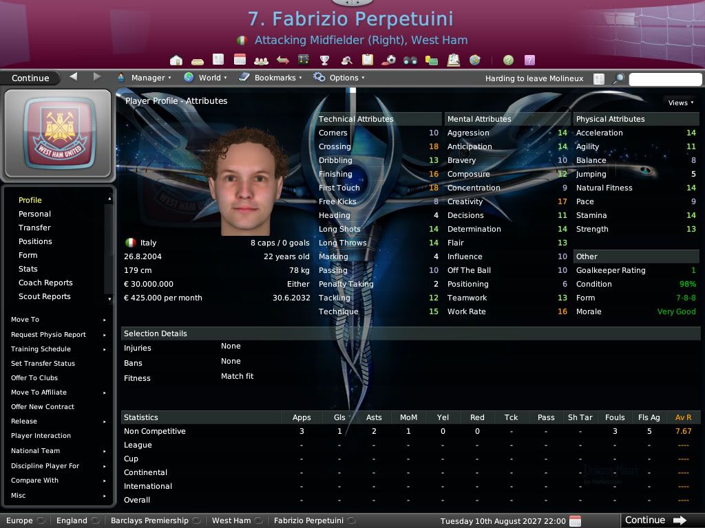 Vice-Presidente Henrique M. Postado 28 de Outubro 2008 Autor Vice-Presidente Denunciar Postado 28 de Outubro 2008 bela campanha Putz, Man Utd na segundona e o chelsea parece caminhar pro mesmo destino O Chelsea também já andou por lá, para falar a verdade. Surgiram algumas tentações, mas essas tentações não disputavam a UCL. :) O nosso grupo na qualificatória não é muito difícil, Sérvia e Israel são os adversários que podem trazer prejuízos, mas nos confrontos diretos, saímos relativamente, jogando em Israel, empatamos por 1 x 1 e jogando em Udine, vencemos a Sérvia por 2 x 0. Somos líderes, invictos até o momento. Tivemos uma pré-temporada não muito movimentada na questão de indas e vindas, mas tivemos que investir pesado. :D Trouxe Anthony Tate, para quem não acompanhou o desenrolar da história, ele é o filho de Lochlainn, tava no Manchester, como estava precisando compôr meu ataque, trouxe ele por empréstimo, é bom que eu acompanho o desenvolvimento dele. Também trouxe uma jovem revelação inglesa, Rob Fuller e gastei 50 M em dois jogadores, Bernard Martin, da Roma e Fabrizio Perpetuini, um gênio pela direita. O elenco ficou com 26 jogadores, um dos mais enxutos que consegui montar. :D E por fim, fizemos alguns amistosos, só melhoramos quando coloquei o time no 4-3-3, com um meio em forma de triângulo, espero que dê certo. E pela 3ª eliminatória da UCL, irei enfrentar o Parma, espero que os caras que forem apitar, não sejam os mesmos que me garfaram contra o Ajax, quando eu ainda estava no PSG. Citar