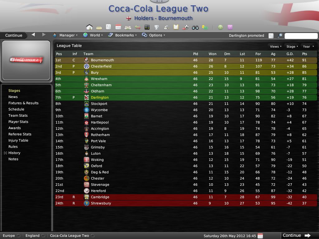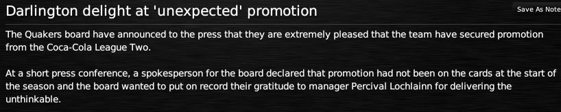 Vice-Presidente Henrique M. Postado 6 de Setembro 2008 Autor Vice-Presidente Denunciar Postado 6 de Setembro 2008 Desempenho regular,onde está pode almejar vôos maiores, já é uma grande avanço comparado às campanhas com os outros times q vc treinou. Boa sorte,perdechaum! Sim, mas aqui eu estou na Inglaterra, lá eu estava na Irlanda, etc e tal. Tem chances de subir, é só conseguir um pouquinho mais de regularidade na sequência, boa sorte! Não precisa de regularidade, só chegar entre os 7 tá bom. Vamos lá!! Vamos subir!!! Nao ta tao dificil assim.. e me explica que monte de cor são aquelas na tabela? Aquele tom pastel, que é o do 1º lugar, é o campeão, o tom amarelo, do 2º ao 3º, são os que sobem junto com o campeão, o verde, que é do 4º até o 7º, são as vagas para o Playoff que decide a última vaga e o vermelho lá embaixo, de 23º e 24º lugar, é quem cai para a Blue Square Premier. Decidi fazer um post diferente dessa vez, vou abordar mais aspectos do país do que do time, para explicar umas coisas. Presente e futuro do futebol irlandês Nosso futebol ainda está muito aquém do que desejamos, nas eliminatórias para a Copa do Mundo de 2010 na África do Sul fomos o pior dos segundo colocados, e não conseguimos vaga para os playoffs que poderiam nos colocar novamente numa Copa do Mundo, mas não foi dessa vez. Na classificatória para a Euro 2012 dessa temporada, a equipe foi muito mal, ficando apenas em 4º lugar, vendo a Suiça conseguir a outra vaga, que foi ocupada pela França. Essa foi a grande decepção da temporada da equipe. Para a Copa de 2014, o grupo irlandês é relativamente fácil, pois cair num grupo que tem Hungria, Croácia, Suiça, Montenegro e Ilhas Faróe e não se classificar ao menos como um dos melhores segundo colocados, será vexamoso e é por isso que temos que ficar de olho na próxima geração do futebol irlandês. Kevin Doyle, Shane Long e Stephen Ireland são nossas principais esperanças nesse espaço curto até a próxima Copa, se eles falharem, muitos vão exigir a renovação da seleção Irlandesa. A dúvida que resta é se Sean Scannell, Robert Brady e Michael Collins e Jackson Collinge podem ser uma aposta no médio prazo. Muitos já querem a cabeça de David O'Leary e especulações surgem em torno desses nomes. Roy Keane, que acabou de levar o Sunderland para a Premier League e Owen Coyle que acabou de subir o Burnley para a Coca Cola Champioship são os nomes mais fortes para uma substituição no próximo ciclo. Mas alguns especialistas, que já pensam mais longe, dizem que Percival Lochlainn, o "Leprechaun", pode ser uma boa aposta nos bancos irlandeses. Lochlainn se consagrou como treinador de futebol gaélico e pelo seu temperamento extremamente explosivo, que lhe causou o banimento eterno do esporte. Quando ele foi se aventurar em outro futebol, dessa vez o futebol "inglês, muitos apostavam que ele não sairia muito longe dos terrenos irlandeses. Ele que começou no Shelbourme, e hoje está no Darlington, passou timidamente por Connah's Quay e rapidamente pelo Shamrock Rovers. Sua maior característica até o momento é a falta de lealdade aos clubes em que treina, em 4 temporadas, já está no seu 4º clube e pode ser que ele vá para o 5º, pois seu nome foi cotado em clubes como Chesterfield, Tranmere, MK Dons, Luton e Cheltenham. A grande força que pode mantê-lo no Darlington por mais tempo foi a recente promoção da equipe para a Coca Cola League One, a equipe que teve uma intensa maratona de jogos, ocupou a última vagas para os playoffs, ficando em 7º lugar, mas isso não foi o suficiente para que Lochlainn não acredita-se em seu time, após vencer o Wrexham por 5 x 2 no agregado (resultado construído na 1ª partida na Darlington Arena) e em uma emocionante final contra o Cheltenham, que foi decidido pelo grande artilheiro do clube, Jason White, aos 112 minutos de partida, selando a vitória por 2 x 1 e colocando o último classificado para os playoffs para disputarem a Coca Cola League One na próxima temporada. Lochlainn é de longe o técnico que era quando treinava a seleção irlandesa de futebol gaélico, hoje, ele se mostra tranquilo e não tem mais aquele temperamente explosivo. Esperamos que ele possa ser o futuro, junto com 3 jovens diamantes que nasceram na Irlanda, Bobby Baker (Motherwell), Steve Hall (Bolton) e Joe Peel (Bray Wanderes) Só rezamos para que nenhum deles se desvirtuem e um dia, a Irlanda possa voltar a sentir o que é uma Copa do Mundo Citar