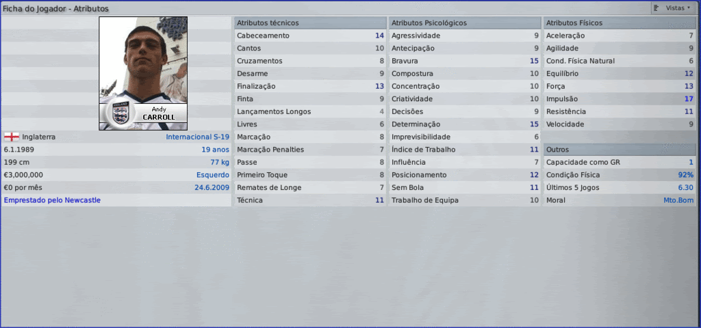 Jirimias Postado 24 de Novembro 2008 Denunciar Postado 24 de Novembro 2008 LETRAS NOTURNAS Diário de Jeremy Klimberly Começou a Championship.Entramos na competição como favorito à subida, responsabilidade que geralmente recai em quem vem da elite.Até o fim de agosto ainda não tinha o plantel fechado, minha preocupação era perder jogadores por lesão e expulsão e não ter substitutos a altura. Entre os contratados muito me agradou o sucesso na negociação de Hoyte junto ao Arsenal, um lateral com características defensivas simplesmente oposto as características dos outros laterais daquele lado do campo. Outro jogador em que se criou uma grande expectativa, foi Limberg Gutiérrez, indicado por um olheiro que estava em missão na América do Sul, será o substituto imediato de M. Matejovsky. Para conseguir dinehiro para reforçar a equipe, dei aval para a venda de Khalifa Cissé que apesar de alguma qualidade, não estava nos planos de minha equipe. Marech Stech |Andy Carrol | Gavy Hoyte | Gutiérrez | | Rene Mihelic | JOGOS Temporada 2008/2009 Fizemos dez jogos entre Championship e Taça da Liga, perdemos uma, empatamos duas e vencemos sete, um bom retrospecto para um começo de temporada.Nossa defesa sofreu 6 gols e nosso ataque foi ás redes 20 vezes. CHAMPIONSHIP Temporada 2008/2009 Temi que a minha inexperiência no cargo fizesse algum mal a equipe, mas não foi tão difícil comandar os jogadores, já que nos últimos meses como jogador eu vinha fazendo isso dentro do campo. Como tive pouco tempo para criar uma tática mais elaborada, resolvi apelar para a básica 4-4-2 com um volante e um meia central, e dois atacantes com liberdade para atacar. Destaco a estréia oficial como treinador, jogo complicado contra uma equipe muito aplicada na marcação.Em um jogo em que os desarmes fizeram a diferença, não dava para esperar um espetáculo.Saímos na frente com Doyle, mas em pouco tempo sofremos o empate, mas não foi um resultado ruim, a temporada estava só começando. Em seguida perdemos fora de casa para o Southampton por 2x1 , um resultado que me deixou preocupado por não termos vencido ainda na Championship. Mas na estréia em casa na competição, enfim encontramos o caminho da vitória ao derrotarmos o Cristal Palace por 1x0 . Sequência de vitória que continuou contra Swansea e Coventry, ambos jogos vencidos por 2x0. No jogo seguinte, a TV estava presente e parece que o Reading ficou acanhado com as lentes das câmeras e não aproveitou a chance de vencer o Wolves em casa depois de sair à frente no placar. Mas voltamos às pazes com a vitória após mais duas vitórias sobre Charlton e Doncaster. Terminamos a 8º rodada na 4º colocação, dentro das expectativas para este início de temporada. CHAMPIONSHIP - RESUMO DA 8º RODADA Temporada 2008/2009 Resumo Clubes | Resumo Jogadores TAÇA DA LIGA Temporada 2008/2009 Depois de passarmos e passearmos pelo Barnet na goleada por 4x0 era hora de enfrentar o tradicional Leeds.Eles surpreenderam com uma mentalidade ofensiva, não esperava este tipo de comportamento, e talvez por isso a equipe demorou para se encontrar e sofreu o primeiro gol logo no começo da partida. Mesmo sem jogar tão bem chegamos ao empate e à virada ainda no primeiro tempo.Segundo tempo veio, e enfim o Reading entrou em campo Ljungberg estava em grande dia e deu passe para o terceiro e marcou o 4º.O Leeds ainda marcou o segundo fechando o placar em 4x2.
