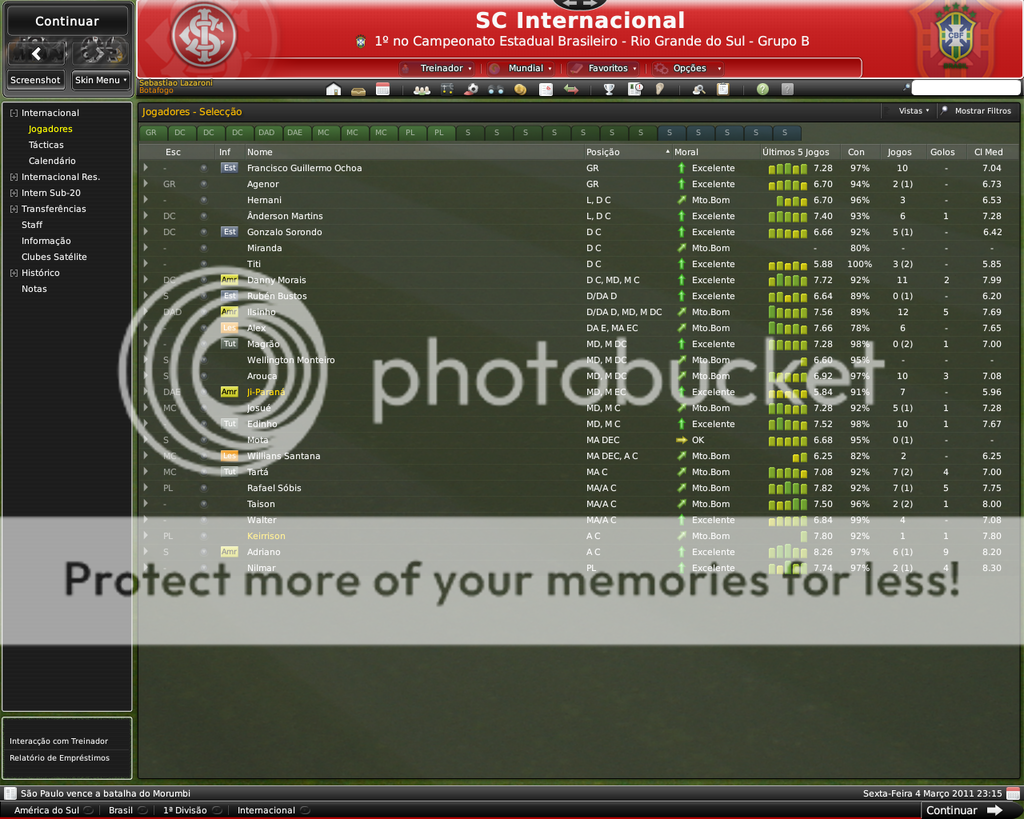 Jirimias Postado 17 de Janeiro 2009 Denunciar Postado 17 de Janeiro 2009 O melhor do Brasil. Alô,Porto Alegre!O melhor time do Brasil está aí.A torcida do Colorado pode se preparar para cansar de ganhar títulos.Com este time até o Lazaroni é campeão mundial! Por favor, não babem com este time : Ochoa(GR),Miranda(DC),Sorondo(DC),Anderson Martins(DC),Rubens Bustos(LD), Ilsinho(LD),Magrão(MD),Josué(MD),Arouca(MD),Mota(MADEC),Tartá (MAC),Rafael Sóbis(PL),Keirrison(PL),Nilmar(PL). É minha gente, parece que as equipes paulistas( Palmeiras) terão uma árdua tarefa neste ano.Quem viver verá.