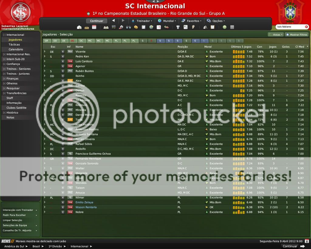 Jirimias Postado 29 de Janeiro 2009 Denunciar Postado 29 de Janeiro 2009 Caramba, esse Luis Cardoso vai virar um monstro! Vai ser dificil conter uma eventual guerra de egos nesse planter hein hehehe Ele tem tudo para ser um grande jogar, novo e já tem bons atributos. Tá difícl, vamos ver se pelo menos o Arouca que ficou contundido baixa a bolinha Pro começo acho que ta bem...o time ta se acertando. Tenho o Nilmar aqui no meu save e ele raramente se machuca...ja tem 2 temporadas e só lesões leves...3 semanas no max! Luis Cardoso MITAÇO! E tem que contratar msm!! "roubar" os grandes jogadores dos adversários é sempre bom... aeuahuhaehuahueauhaehuaue Tomara eu seja isso mesmo, eu tb acho que seja questao de acertos no começo da temporada. Que bom que aí ele pouco se machuca,aqui na temporada passada ficou três meses e agora ficou lesionado de novo. Vou colocar o Cardoso para aprender a jogar na lateral esquerda tb, vou rpecisar dele jogando ali tb. Não me incentiva a contratar não :heh: Começou a Libertadores muito bem, já no Gauchão é aquilo que falei. Complicado você perder o titulo! O chato mesmo é ver o time jogando ainda metade do que pode, isso é chato. Esse luis cardoso é um monstro, mas se ele tivesse mais equilíbrio... Lá vai o Gilson azarar o pobre do moleque hushuahsua, mas é verdade ,apesar q ele não precisou muito, aliás ele tem uma mania estranha de sair correndo lá de trás até no na linha de fundo, mas isso é direto, mais do que os outros laterais, só que ele faz isso voando, mas do jeito que´ele não tem equilíbrio vai acabar saindo do estádio, Eu acho que podia estar ganhando os jogos mais facilmente, mas as lesões e a consequente falta de continuidade complicam mesmo. Mas, assim que esse time encaixar, ninguém segura o Colorado. O 2009 tem produzido verdadeiros monstrinhos como newgens. O Luis Cardoso é muito bom, mas o Roberto me impressionou. Com 15 anos, é melhor que qualquer um do meu Hyde! :lol: É esse o problema, espero que eu consiga ver este time jogar tudo que pode antes de ser mandado embora hehe O Roberto é craque mesmo, outro bom é o xará dele do Honduras, o cara é fera na defesa, até pq parar o Aguero não é pra qualquer um,né? ;)