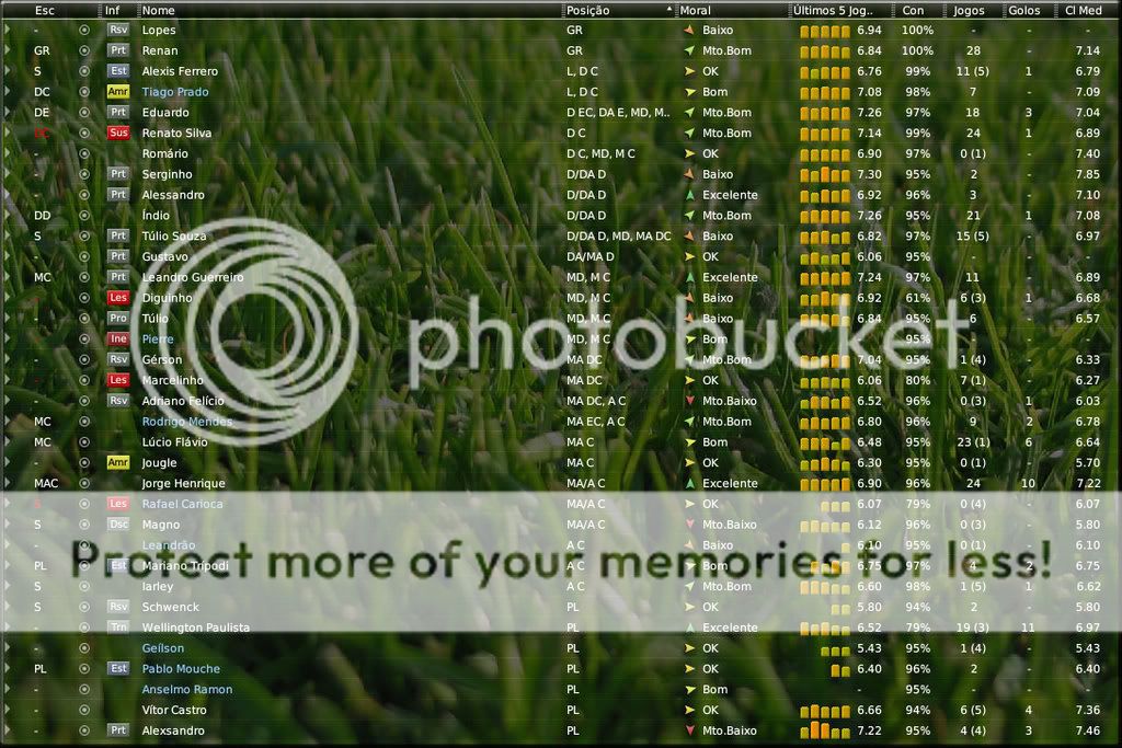 Jirimias Postado 29 de Dezembro 2008 Denunciar Postado 29 de Dezembro 2008 Um ataque mais ou menos bom não é?! Tá um caos essa situação financeira aí. Mas é legal sofrer... hehe O Mouche é um mito no 2008, vamos ver agora no Bota em 2010. mais ou menos menos hushauhsua. No Fm a graça realmente é sofrer hehe No Fla o Mouche não jogou nada, aqui o começo dele foi bem apagado,mas confio que ele irá despertar para ajudar o clube. Ae Jiri, tinha dado uma sumida pra fazer outras coisas mas agora voltei a acompanhar... primeira temporada pessima hein? tanto no shennua quanto no vasco, hehehehe! Agora jah conseguiu a taça rio com o botafogo, mas vai precisar de muita competencia pra colocar as finanças em dia com a estrela solitaria... ah, eu nunca treinaria o Inter, hehehehe! Boa sorte! Tranquilo,tec. Sobre a primeira temporada foi mesmo terrível, mas foi bom ter voltado ao Brasil. Nesta segunda temporada a coisa está caminhando melhor , não sei se vou conseguir dar jeito na situação do Bota mas foi fazer o possível para não piorar. Para mim no FM agora todo prazer me diverte, só não jogo na segunda pq título da segunda divisão é o mesmo que ficar exatamente depois do último da primeira divisão.