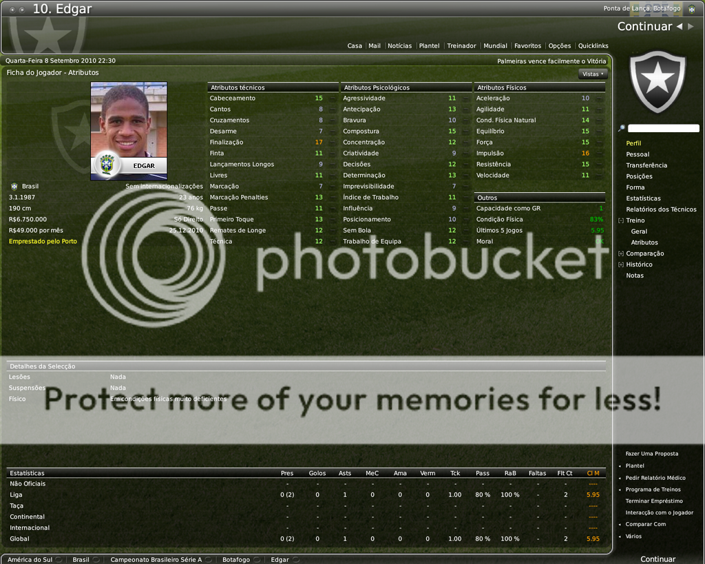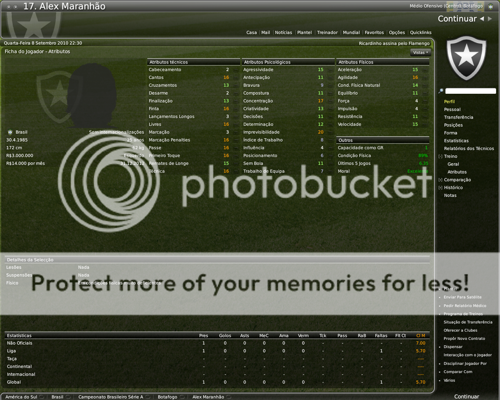 Bruno Trink Postado 6 de Janeiro 2009 Denunciar Postado 6 de Janeiro 2009 Impresionante! Eu gosto de contratar, mas você me barra fácil! :lol: O Tiago Prado cansou de entregar no Flamengo e eu cansei dele também. Mas só funcionava mesmo de líbero. E está difícil mesmo acertar com um atacante nesse FM. No mais, o asilo tem tudo pra dar certo no Botafogo..