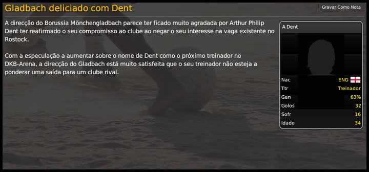 Bruno Trink Postado 28 de Março 2009 Autor Denunciar Postado 28 de Março 2009 Altas SS's erradas. E tomara que consiga mesmo se dar bem na Copa e manter o nível no Alemão. Acertei, acertei! :lol: Espero as duas coisas, se bem que a Copa vai ser muito difícil! 15.12.2013 Fim da primeira metade do campeonato, o Werder Bremen está mantendo a ótima campanha e conquistou o título simbólico de inverno. A equipe do técnico Thomas Doll faz uma Bundesliga brilhante, tem o melhor ataque e a melhor defesa da competição, o artilheiro Hugo Almeida e o melhor jogador, Said Husejinovic. Continuamos surpreendendo e ainda estamos na vice-liderança. O "título" chegou com uma rodada de antecedência, com uma vitória categórica sobre nós no Weserstadion. Entramos em campo sem pressão, sabendo que a derrota seria um resultado normal. Isso deixou o time relaxado e até vínhamos fazendo uma boa partida até o gol de Hugo Almeida. Logo depois, Mutombo se confundiu e marcou contra. Daí em diante, o Werder mandou no jogo e só não fez mais por conta de mais uma ótima atuação de Brad Guzan. No finalzinho, Thiago Neves ampliou. A derrota não nos abalou. Na rodada seguinte, em casa, destruímos o Hansa Rostock em 45 minutos. Milos, que não marcava há sete jogos, fez dois e Stiepermann completou o placar. Depois da partida, Frank Pagelsdorf, treinador do Rostock, foi demitido e meu nome foi ventilado pela imprensa. Eu gentilmente recusei, estou muito feliz em Gladbach e a diretoria ficou bastante satisfeita com a minha negativa. Temos agora um intervalo de um mês e meio por causa do inverno rigoroso, mas eu volto antes, para dirigir a Argélia na Taça das Nações Africanas. Estreamos contra a República do Congo, no dia 18 de janeiro, e depois enfrentamos Egito e Nigéria. Grupo duro... Citar