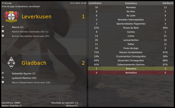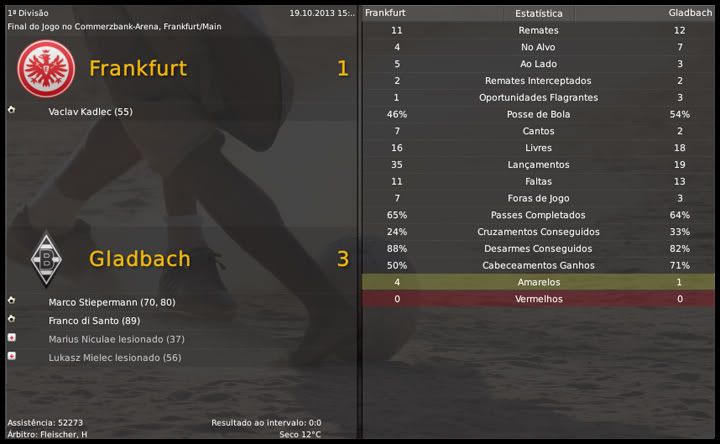Bruno Trink Postado 26 de Março 2009 Autor Denunciar Postado 26 de Março 2009 :groupwave: Aêê, vaga na Copa \o Agora é se focar no Borussia Moenchgladebach(É assim? ^_^) Quase isso, é Mönchengladbach (ou "oe" no lugar do "ö") ;) Egito e Marrocos morreram abraçados. Parabéns pela classificação. Valeu, Pedro! Parabéns, mereceu! E quando falou que o grupo não era tão complicado eu não acreditei. Mas a seleção argeliana jogou muito e como já disse, mereceu. Jogou muito mesmo, principalmente nos três jogos em casa. A vitória em Marrocos que foi mais surpreendente e, no final, nos deu a vaga. 17.10.2013 Fizemos ontem o último jogo das Eliminatórias para a Copa. Foi difícil manter o foco da seleção, com a vaga para a Copa já assegurada, nessas duas partidas, contra Guiné e Egito. Preferia, lógico, ter encerrado nossa campanha com vitórias, mas não conseguimos. No sábado, em Conacri, capital de Guiné, até fizemos uma partida equilibrada. Ghezzal abriu o marcador logo no início, o que parecia indicar mais uma vitória nossa, mas Mohamed Sacko empatou com um golaço de fora da área, três minutos depois. A trave evitou nossa vitória por duas vezes e, no final, Fodé Mansaré completou cruzamento da direita e decretou a vitória guineana. Ontem, nossa última partida foi em Cairo. O fator clássico motivou um pouco nossa equipe, mas enquanto, mais uma vez, a trave era nossa adversária, os egípcios estavam com a pontaria em dia. Farouk, El Mohamamdy e Abd Rabo marcaram com Ghezzal, sempre ele, descontando no final. De positivo nesses dois jogos, ficaram as estréias na seleção principal de três jovens de bom futuro para a seleção, Karim Aourami, Walid Derrardja e Aymen Tahar. Conhecemos, ontem também, as outras quatro seleções africanas classificadas para a Copa: Camarões, com uma campanha perfeita de seis vitórias, Costa do Marfim, numa reação fantástica, Nigéria e Gana. Na Alemanha, tudo dentro do esperado. A Bundesliga está bastante equilibrada nesse início, a diferença entre o líder Stuttgart e o 8º colocado Borussia Dortmund é de quatro pontos. Nós ainda estamos oscilando bastante, eu ainda estou procurando a formação ideal. Já testei um 4-4-2, com dois volantes e dois alas, um 4-2-1-2-1, com os dois meias ofensivos centralizados, e, nos últimos jogos, usei um 4-1-3-2 semelhante ao esquema que eu usava no Tranmere. À princípio, acabarei optando por jogar com dois atacantes, uma vez que, quando Niculae jogou sozinho, ficou muito isolado e vencemos apertado o Colonia e apenas empatamos com o Wolfsburg, ambas partidas no Borussia-Park. Na última partida, com di Santo e Jovetic, massacramos o Alemania Aachen, com um show do montenegrino. Ainda pude perceber que a vitória sobre o Bayern parece ter sido um acidente. A derrota para o Schalke foi categórica e me mostrou que precisamos melhorar bastante para nos equiparar aos grandes da Alemanha. Pela 2ª Eliminatória da DFB-Pokal, fui mais uma vez com o time reserva, que não saiu do zero, vencendo apenas na disputa por pênaltis. Enfrentaremos na próxima fase o Bayer Leverkusen, que não faz uma boa campanha na Bundesliga. Citar