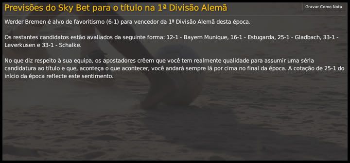 Bruno Trink Postado 3 de Abril 2009 Autor Denunciar Postado 3 de Abril 2009 O Gómez nem é promessa, já é um grande jogador. PQP Os outros reforços foram bons, tem tudo pra lutar arduamente pelo título essa temporada O Gómez já é bom sim, mas acho que ainda pode melhorar bem. ORÇAMENTO PARA Transferências E O DE SALÁRIOS lol Finanças: Campeões: Alemanha: Werder Bremen (Gladbach) Escócia: Rangers (Hibernian) Espanha: Real Madrid (Valencia) França: Lyon (Olymipque de Marseille) Grécia: Olympiakos (Panathinaikos) Holanda: PSV (Feyenoord) Inglaterra: Arsenal (Chelsea) Itália: Juventus (Inter) Portugal: Sporting CP (Benfica) Ucrânia: Dinamo Kiev (Shakhtar) Citar