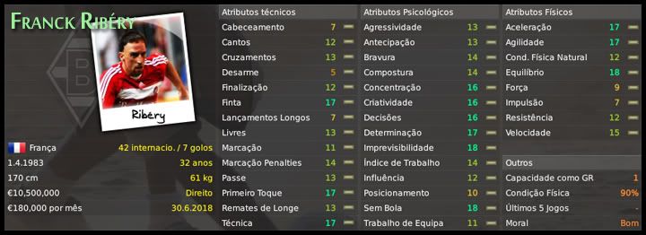 Bruno Trink Postado 27 de Abril 2009 Autor Denunciar Postado 27 de Abril 2009 Noel é um bom cara com você. Não é?! Fantástico!! Inter como presente de Natal...como disse o Henrique, o Bom Velhinho justificou o apelido, hein? Mas tem nada não, com Pipokeirrison no ataque, sua defesa ficará tranquila :lol: Acho que o Keirrison não faz jus a esse seu apelido por aqui não! Nessa temporada, já fez 15 gols em 25 jogos, é titular da Inter há 4 temporadas. Espero que ele pipoque quando encarar o Senderos! :lol: Eu sempre me eskeço que tu jah tah lah em 2016, heauiehauiehaueiaheauiehauiehaui! Mas eu posso falar do keirrison, em 2010, 2011 jah eh tarado, imagino em 2016, eahueiaheiauheauiehaui! O Foti jah ouvi fala q eh bom, guardado é quase impossivel parar na meia esquerda... mas vah lah, boa sorte! hehehehehe! Eu não conhecia esse Foti não, mas a Inter pagou 30 milhões de euros nele há 3 temporadas, está com uma média de 20 gols direto. É certo que vai ser um confronto complicado, mas, quem sabe, né?! Bruno se isso vai te animar eu não sei mas tem uma história com a Inter pra vc. Começei um save aqui no WE 2008 onde jogamos um campeonato misto, erão 20 times ao todo classificação por pontos, dai eu peguei o Milan, um pegou o Barça, o outro Man United, o outro Arsenal. Dai blz coloquei os outros 16 times bem fortes e dificuldade alta pra testar nossas habilidades, e não é que na 4º rodada a Inter tava disparada na 1º colocação com 4 vitórias e um saldo de gols invejavel!!! e jogava contra mim na 5º e eu não tava muito bem não apesar ter ganhado num desempate com gol de bicicleta e as porra =). Blz começa o jogo e Ibra tomou cartão vermelho logo de cara =) dai foi so alegria ataquei com tudo e terminei ganhando o jogo só não lembro o placar. Boa sorte ai pra tu. Valeu, Paulynhow! Espero que, comigo, uns dois ou três deles sejam expulsos! Só assim eu tenho alguma chance!!! :heh: 03.02.2016 Mais uma vez, aproveitamos muito bem o período de mais de 40 dias de parada no campeonato para fazer uma espécie de inter-temporada. Montei, com a comissão técnica, um esquema de treinamentos muito parecido com a pré-temporada, mais focado na preparação física, mas com alguns amistosos para manter os jogadores com ritmo de jogo. Espero que dê o mesmo resultado da temporada passada. Como sempre, o assédio aos nossos jogadores foi grande. Parece, no entanto, que eles estão começando a se acostumar com o nosso projeto de transformar o Gladbach num dos grandes da Europa. O garoto Fabio Fiore teve uma proposta forte do Milan e nem se abalou quando eu a rejeitei. Até o uruguaio Carlos Díaz, que estava insatisfeito desde que eu não o deixei ir para o Chelsea no começo da temporada, não ficou chateado quando, mais uma vez, eu recusei uma proposta do Manchester United por ele. Apenas dois jogadores saíram nessa janela de inverno: o goleiro Marcelo Grohe, mais encostado do que nunca depois da chegada do Neuer, acertou sua volta ao Brasil e vai defender o Flamengo. Além dele, o dublê de zagueiro e volante Fabio Ceravolo, que chegou ao Borussia-Park na negociação do Jovetic para o Catania, não se adaptou a Alemanha e foi negociado com o Blackburn. Em contrapartida, algumas oportunidades para reforçar o elenco apareceram e eu não pude deixar de aproveitar. O holandês Ismail Aissati foi oferecido pelo Arsenal mas preferiu acertar com o Atlético de Madrid. As negociações com aquele jogador da seleção brasileira voltaram a esquentar e Júlio Baptista, na Roma desde 2008, chega para disputar uma vaga no ataque. Com a saída iminente do Grohe, já estava pensando em um goleiro para substituí-lo. Abri negociações com Rubinho, brasileiro do Genoa, mas, quando conversei com Serginho Chulapa, treinador do Flamengo, fiquei sabendo que o seu antigo nº 1 estava deixando a equipe depois de dez temporadas e que se tratava de um excelente atleta. Dessa forma, Bruno chega ao clube para substituir Marcelo Grohe. O grande nome, entretanto, é o do francês Franck Ribéry que, depois de duas temporadas no Manchester City e uma temporada e meia no Tottenham, foi contratado e recebeu a camisa 10 que estava precisando de um dono desde que eu cheguei ao clube. Voltamos à ativa daqui a algumas horas contra o Hertha Berlim aqui na nossa casa, pela 3ª Eliminatória da DFB-Pokal e a diretoria espera que, dessa vez, consigamos avançar nessa competição, apesar de não ser meu foco. Citar