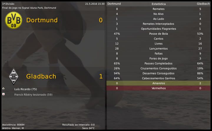 Bruno Trink Postado 6 de Maio 2009 Autor Denunciar Postado 6 de Maio 2009 Tomara que não seje nada demais.. Sorte ae! Realmente não foi nada demais, que bom! Que jogo ,rapaz!Nossa, imagino como vc deve ter ficado depois de ver eles empatando o jogo...trágico, mas conseguiu!E não dá pra relaxar, vem mais pedreira. Sorte com o pc! Foi brabo!!! Eles pressionaram demais depois do empate, mas conseguimos nos segurar! Mordi a minha língua, debochei do Mascherano e ele marcou o dele no Borussia... No mais tudo já foi dito aqui, que jogaço! Parabéns pela classificação! Lembrei de você na hora do gol do Masc mesmo! Foi um jogaço, um dos mais emocionantes que eu joguei no FM. 03.05.2016 A "ressaca" pós-Liverpool durou pouco. Quatro dias depois, já estavamos em campo para enfrentar o Werder Bremen pela Bundesliga. O gol, logo cedo, de Luís Ricardo nos deu tranquilidade para levar a partida e vencemos bem por 2 a 0. No final de semana seguinte, jogamos contra o Aachen no Tivoli-Stadion e vencemos de virada, com direito a gol nos acréscimos. O Bayern tambem venceu suas duas partidas e, assim, a diferença de três pontos continua. Viajamos para Turim com apenas 16 atletas, uma vez que tínhamos inúmeros jogadores lesionados e suspensos, entre eles Milos, nosso artilheiro na temporada, e Fiore e Marinov, dois dos melhores jogadores do time. A Juventus, se aproveitando do fator casa e dos nossos desfalques, começou o jogo com tudo. Com 8 minutos, Renato Augusto sentiu uma lesão numa dividida com Sissoko, mas conseguiu continuar em campo. Três minutos depois, a nossa defesa se enrolou, a bola sobrou para Giovinco que abriu o placar. A Vecchia Signora manteve a pressão e o francês Clément Chantôme perdeu duas boas chances, mas Neuer salvou uma e o poste outra. No final da primeira etapa, Ribéry foi outro a se contundir, mas nada muito sério. O panorama não mudou muito no início da segunda etapa. Mas a Juventus abdicou um pouco do ataque e parecia achar o 1 a 0 de bom tamanho. Dentinho perdeu uma boa oportunidade e, no mais, fez apenas alguns remates de longe. Aos 37 minutos, Franco Caruso entrou na área pela esquerda e foi derrubado por Luca Cigarini. Na minha opinião, foi o terceiro pênalti no jogo, mas só esse foi assinalado. Luís Ricardo foi para a cobrança, mas bateu mal e Buffon pegou. O pior aconteceu nos acréscimos. Dentinho deu ótimo passe para Amauri que avançou e bateu na saída de Neuer. Esse 2º gol da Juve foi um balde de água fria para nós. Sem marcar fora de casa, nossa tarefa ficou complicadíssima. Teremos alguns jogadores voltando no Borussia-Park, mas a vantagem conseguida pelos italianos vai ser difícil de ser revertida. Na outra partida, o United bateu o City por 2 a 1, no City of Manchester e encaminhou a classificação para a final. A esperança é a última que morre... Citar