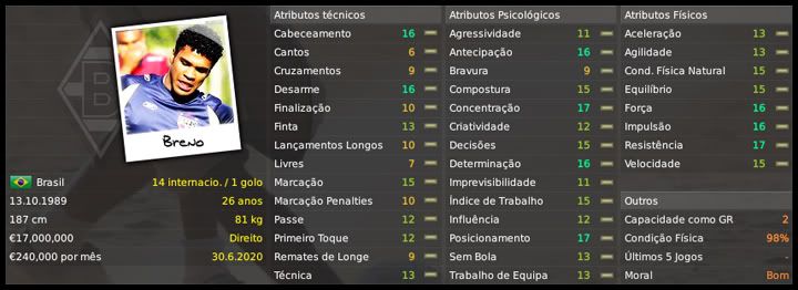 Bruno Trink Postado 7 de Maio 2009 Autor Denunciar Postado 7 de Maio 2009 30.06.2016 Eu sempre falei que só saio do Borussia Mönchengladbach quando surgir uma oferta de um dos gigantes do futebol europeu. Até porque um dos objetivos que eu tenho desde quando cheguei aqui é o de aproximar o clube cada vez mais desses poderosos. Meu contrato ia até o final dessa temporada e a diretoria se antecipou e me fez uma nova proposta: mais quatro anos no comando do clube, com um salário mais de quatro vezes superior ao que eu recebo atualmente. Pensei até em negociar um contrato de duração menor e sei que eles aceitariam, mas aceitei a proposta. Antes até da renovação, já estava planejando a temporada 2016/2017. Amanhã se apresentam no Borussia-Park dois reforços, os brasileiros Lucas Leiva e Breno. Lucas estava no Real Madrid, com poucas chances, e eu já tinha, inclusive, tentado contratá-lo no final da temporada passada, quando seu contrato estava se encerrando. Mas ele acabou renovando com o clube espanhol e, pelo jeito, se arrependeu e me fez gastar €8M. Breno vem para resolver um problema que eu tive na temporada passada. Lorenzo Ariaudo ficou lesionado boa parte do ano, Senderos nunca inspirou confiança e, em vários jogos, eu tive que puxar zagueiro das categorias de base ou improvisar o Ramón ou o Van Damme. O brasileiro chega para formar a zaga com Vernydub, ídolo da torcida, escolhido jogador do ano pela 2ª temporada seguida. Mais uma vez, eu pretendo manter a base da equipe e a idéia é não contratar mais. Mas os urubus já sobrevoam o clube, de olho nos nossos jogadores. Tentarei, claro, manter todos, mas não quero ninguém insatisfeito no clube. Citar