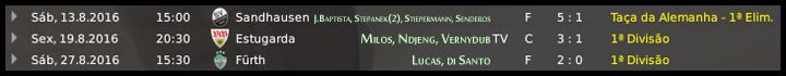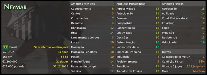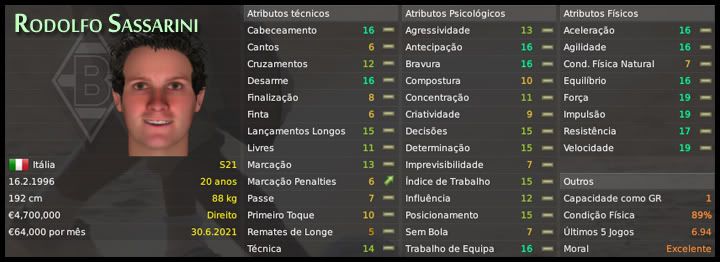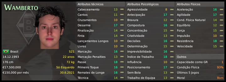 Bruno Trink Postado 13 de Maio 2009 Autor Denunciar Postado 13 de Maio 2009 26.10.2016 Estar entrando na 4ª temporada em um clube tem suas vantagens. Ainda mais se conseguimos manter o elenco de uma temporada para a outra, como está acontecendo pela primeira vez. Passamos a conhecer melhor nossos jogadores, saber onde eles podem render melhor. Ramón, que está conosco desde 2014, sempre jogou como lateral numa linha de quatro zagueiros. Sempre muito bem, é verdade, mas, na temporada passada, quando tive vários problemas com lesões, o brasileiro quebrou um galho na zaga e o fez muito bem. Nesses primeiros jogos, com a volta do italiano Rodolfo Sassarini, dublê de zagueiro e lateral, que passou dois anos emprestado no Salernitana e no Almería, resolvi experimentar um novo esquema de jogo. São três zagueiros, dois volantes, quatro meias com poucas funções defensivas e um atacante centralizado. pouco e o placar terminou mesmo em 3 a 0. Nos primeiros jogos, o esquema tem funcionado bem. Como Ramón e Sassarini, além de fortes, são rápidos, a falta de laterais é coberta pelos dois, enquanto os dois volantes, Lucas e Wamberto, voltam para cobrir a zaga. Os alas, Marinov de um lado e Ribéry do outro, dão o primeiro combate nos laterais do adversário e chegam sempre bem pelas pontas e os dois meias apóiam constantemente Milos, o atacante fixo. Em um jogo, especificamente, contra o Duisburg, escalei os reservas e a defesa não foi tão bem. Isso porque meus zagueiros reservas não tem a mesma velocidade dos titulares e acabamos sofrendo dois gols. Fizemos os três primeiros jogos da fase de grupos da UEFA Champions League e está tudo dentro do previsto. Vencemos Juventus e PSV no Borussia-Park e goleamos o fraco time do Gent na Bélgica. Assim, abrimos três pontos na liderança do grupo C, com a Juventus em segundo. Na Bundesliga, muita disputa pelas primeiras posições. Invictos, mas com três empates, estamos na terceira colocação, mas apenas um ponto atrás dos líderes. Werder Bremen e Dortmund estão logo na cola e o Bayern decepciona. Está apenas em 10º lugar, foi eliminado pelo pequeno Oberhausen na DFB-Pokal e está atrás de Olympique de Marseille e Dinamo Kiev no seu grupo da Champions. Citar