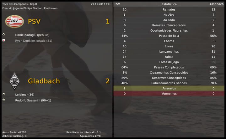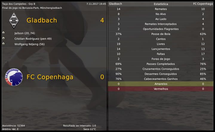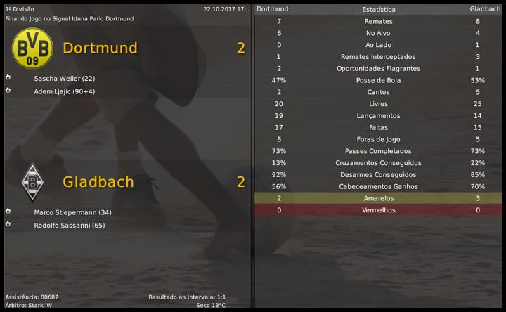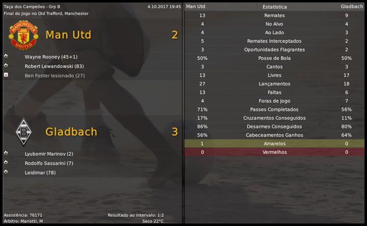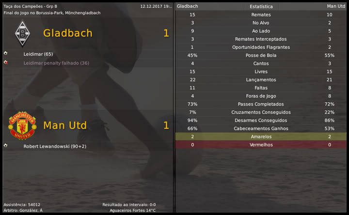 Bruno Trink Postado 30 de Maio 2009 Autor Denunciar Postado 30 de Maio 2009 Mais um ano de títulos está por vir. Apesar de começar o ano perdendo um nos penaltys. Espero que essa perda não seja um mau presságio. Ufa, leitura atualizada. Tinha parado nas oitavas da UCL :bleh: Parabéns pelo título europeu!!! No English Team, fez grande campanha, pena que o título não veio, mas força! E ah, que início arrasador!!! O Gladbach achou seu posto entre os grandes e não sai mais. Agora, vai ganhar tudo esse ano!!! :thumbsup: Valeu, Tsuru, bem vindo de volta. Tudo não dá mais pra ganhar, né?! :heh: Leidimar homem gol! Anda arrasador,liderando tudo ... o desafio agora é ser campeão invicto do camp. nacional. Finalmente eu consegui montar um time com um goleador mesmo. Nunca faço artilheiros nos meus times, vamos ver se "Leid" consegue esse feito. 17.12.2017 A série invicta continua. O time continua jogando no mais alto nível e nos últimos doze jogos tivemos apenas dois empates, com 25 gols marcados e apenas sete sofridos. Passamos tranquilamente para a próxima fase da UEFA Champions League. Vencemos bem o FC Copenhaga em casa e a classificação só veio em Eindhoven, na vitória sobre o PSV nos acréscimos. Em casa, perdemos os 100% de aproveitamento ao deixar o Manchester United empatar aos 47 do 2º tempo. Estamos sobrando na Bundesliga. Metade da competição já disputada e estamos com absurdos 13 pontos de vantagem sobre Bayern e Dortmund. Mesmo ainda faltando 17 jogos para o fim, acredito que somente uma hecatombe nos tira do caminho do tetracampeonato. A motivação vai ser conseguir, como a torcida quer, o título invicto. O próximo destino é a China, sede do Mundial Interclubes. Como vem acontecendo nos últimos anos, com o calendário apertado, essa competição está sendo disputada mais tarde e passaremos o Natal e o Ano Novo no Oriente. Citar