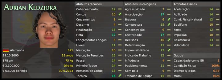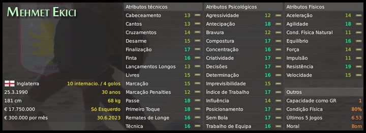 Bruno Trink Postado 16 de Julho 2009 Autor Denunciar Postado 16 de Julho 2009 15.09.2020 O emparelhamento na fase de classificação da UEFA Champions League não foi nada favorável para nós. O adversário na luta pela vaga na fase de grupos era a forte Juventus, que enfrentamos logo na primeira partida oficial da temporada 2020/2021. Não podíamos nos deixar abater por isso, lembrei aos jogadores todo o trabalho que tivemos na temporada passada para conseguir a vaga para a Champions e que esse confronto definiria o nosso projeto para o ano. O time comprou a briga. László Németh nos deu um susto logo aos 9 minutos, mas a equipe não se abateu e virou o jogo para 3 a 1 ainda no primeiro tempo. Nem a expulsão do marroquino Gloub tirou o nosso ânimo e John Anthony ainda marcou o quarto gol e ampliou nossa vantagem para o jogo em Turim. No Delle Alpi, Benzema marcou seu primeiro gol em partidas oficiais com a camisa do Villa e a classificação nunca esteve ameaçada, mesmo com a superioridade da Vecchia Signora em muitos momentos da partida. Giordano e Cavani viraram para a Juve, mas Nick Jones empatou no final. Mais uma vez, a sorte não foi "boazinha" conosco. Estamos no grupo D, junto com Inter de Milão, Valencia e CSKA Sofia. Entre as duas partidas contra a Juventus, aproveitando que a janela de transferências ainda estava aberta, fechei mais três contratações. Já tinha percebido uma carência de meias ofensivos e trouxe dois, ambos trabalharam comigo no Gladbach, o português José Leitão e o alemão Adrian Kedziora, este último uma promessa de craque. Sem contrato estava o o zagueiro inglês Dean Barrow e eu não pude deixar passar essa oportunidade. O início na Premier League está sendo como mandam os especialistas: vitórias em casa, empates fora. Além disso, perdemos a final da Supertaça Européia para o Arsenal, campeão da UCL. Mas as atuações não empolgam, nem aos torcedores e nem a mim. Tanto é que, já na partida contra o West Ham, eu já ensaiei uma alteração tática na equipe. Mehmet Ekici, que estava fazendo a dupla de volantes com Aaron Hill e é conhecido por sua versatilidade, foi adiantado para jogar ao lado de Nick Jones. Com isso, Benzema tem mais companhia no ataque mas, em compensação, temos que segurar mais os laterais. O primeiro forte teste para a nova formação será hoje, contra o CSKA em Sofia, na primeira partida da fase de grupos da Champions. Citar