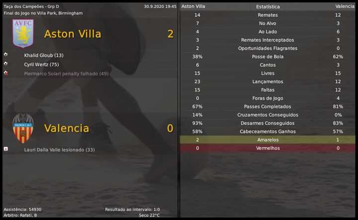 Bruno Trink Postado 18 de Julho 2009 Autor Denunciar Postado 18 de Julho 2009 Com a criação da Liga Europa e a reformulação do acesso aos grupos da UCL é possível ver confrontos interessantes nas fases preliminares como o seu Villa e a Juve. Grande partida em casa e vaga garantida. Perder a supertaça não foi bom, mas é um troféu menor. Onde você pensa que está para gastar 39M no Benzema? No Real Madrid? :D Grupo chato. Precisa fazer os 6 pontos contra os búlgaros. E o restante dá para aprontar contra os outros dois. Está achando que só os galáticos podem gastar muito dinheiro no Benzema?! Tudo bem que ele já está "velhinho", mas o Villa também pode! :) Não tem nem como não fazer os seis pontos contra o CSKA. E contra os outros dois... Bem, você vai ver... 21.10.2020 Que jogo! Essa foi uma daquelas partidas das quais quem esteve no Villa Park vai recordar para sempre. Um primeiro tempo fantástico do Villa sobre o atual campeão da serie A italiana e vice campeão da Champions acompanhado de uma reação igualmente sensacional da Inter. Uma partida com nove gols e um vencedor. Nosso início foi fora de série. A primeira chance, entretanto, foi da Inter, mas Guardado cobrou falta para fora. Numa linda jogada de Wertz pela direita, Ekici completou para as redes o cruzamento perfeito. Logo depois, o mesmo Wertz bateu falta pela esquerda e Vandam estava na segunda trave para ampliar de cabeça. A pressão continuou. Ekici, de falta, jogou para fora, mas, aos 27 minutos, Benzema dividiu com o goleiro Gilmar e fez o terceiro. E não parou por aí. Ekici abriu na esquerda para John Anthony que avançou, ganhou do goleiro brasileiro e completou para o gol. Mas o colombiano Felipe Figueroa mostrou que não estava para brincadeira. Um minuto depois, recebeu passe de Freddy Adu, avançou e bateu sem chances para Cullen. Logo na saída, Ekici bateu para o gol, Gilmar espalmou e Nick Jones foi mais rápido no rebote para marcar o quinto. Nos acréscimos, Figueroa ainda teve tempo de fazer mais um de fora da área. Já esperava uma reação interista no segundo tempo. Até por isso, coloquei Gojko Kacar no lugar do contundido Nick Jones. Figueroa fez seu terceiro gol logo aos seis minutos e eu comecei a esperar pelo pior. A Inter mudou para um 3-5-2 e veio para cima com vontade. Adu fez o quarto gol, completando passe de Santon e incendiou ainda mais a partida. Mas o time foi heroico e segurou a vantagem até o final. Os últimos minutos ainda proporcionaram mais emoção, com gols perdidos dos dois lados, com Figueroa e Benzema. Mas o placar final fechou mesmo em 5 a 4. Essa vitória foi fundamental para nosso sonho de seguirmos vivos nesse grupo complicado. Havíamos goleado o CSKA em Sofia, numa atuação monstruosa de Mehmet Ekici, e vencemos bem o Valencia no Villa Park. Com as três vitórias, somos líderes do grupo D e mais quatro pontos nos garantem a classificação. Na Premier League, até estamos fazendo uma campanha bem aceitável. Perdemos para o Arsenal no Emirates, mas vencemos as outras três partidas. O problema é que o Manchester City está insuperável nesse princípio de temporada e já abriu sete pontos na liderança. Teremos o confronto com os azuis daqui a duas rodadas, mas será no City of Manchester. Na estreia na Carling Cup, derrotamos o Chelsea e nosso próximo adversário será o Sheffield Wednesday. Nesse período, voltei a dirigir o English Team nas Eliminatórias para a Copa de 2022, que será disputada no México. Depois de empatarmos na estreia com a Áustria, precisávamos voltar às vitórias nas duas partidas seguintes. Tivemos uma ótima oportunidade de apagar a má atuação jogando em casa, contra a fraca seleção das Ilhas Féroes. Sem fazer muita força, goleamos por impiedosos 9 a 0. Fomos até Istanbul e o gol logo cedo de Jamie Richards nos deu a tranquilidade para construir uma importante vitória. Assim, empatamos na liderança do grupo 1 com os austríacos, que, com seu futebol burocrático, venceu as duas partidas por 1 a 0. Citar