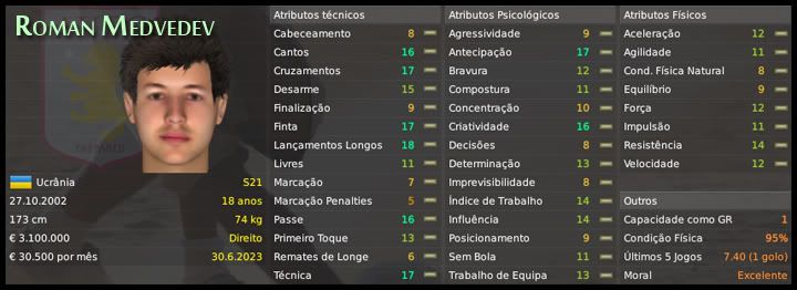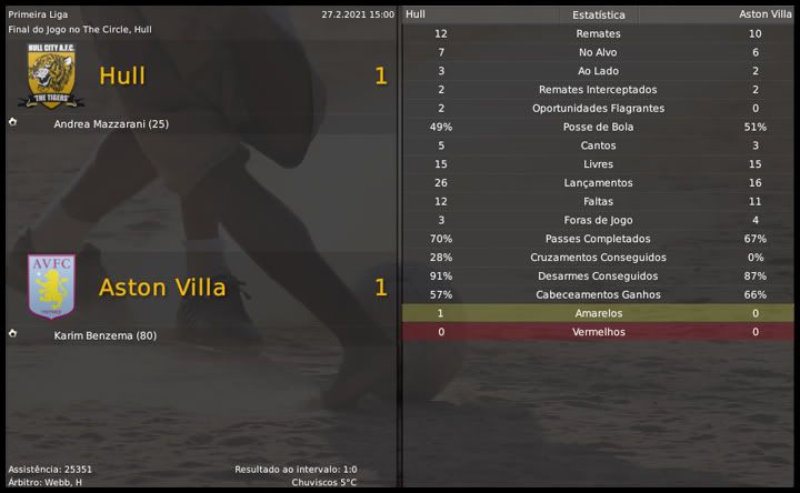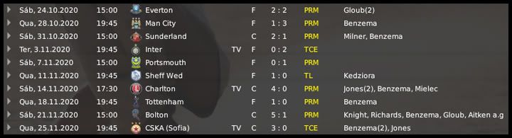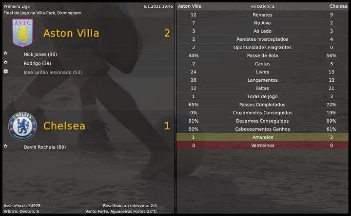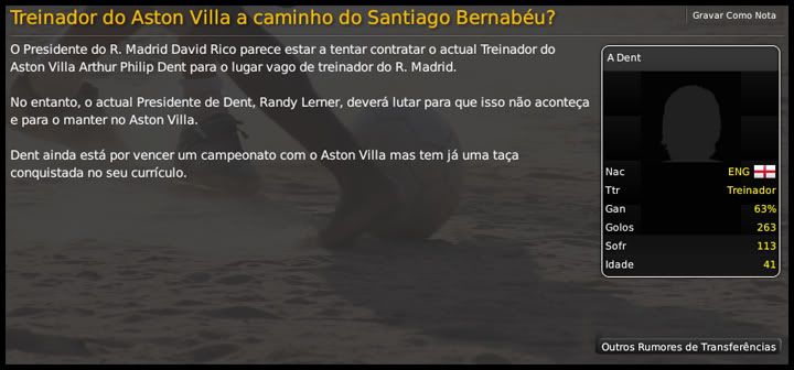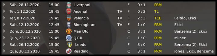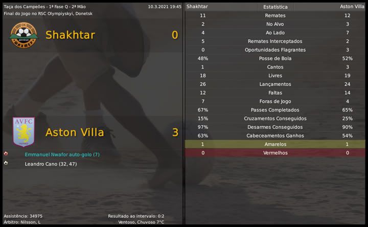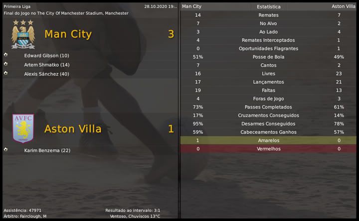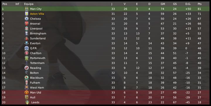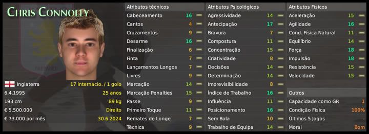 Bruno Trink Postado 22 de Julho 2009 Autor Denunciar Postado 22 de Julho 2009 parabwens pela classificação na UCL.. na liga, eua cho péssimo quando um clube dispara assim.. vai ser dificil alcançar o city de novo Difícil mesmo. Se continuar assim, o foco vai ter que mudar para uma vaga na Champions novamente. 02.01.2020 Depois da classificação antecipada para a próxima fase da UEFA Champions League, encaramos sequência complicada de jogos fora de casa. Para começar, o Liverpool, no Anfield, e perdemos por 1 a 0. Três dias depois, fomos ao Emirates enfrentar o Arsenal pela terceira vez nessa temporada. Novamente, fomos dominados completamente e o 2 a 0 foi pouco para o que foi a superioridade da equipe londrina. Voltamos para uma semana de treino antes de viajar para Valencia para um jogo que valia pouco para nós e tudo para eles. Imaginando uma vitória tranquila da Inter sobre o CSKA, os espanhóis pressionaram o jogo inteiro e abriram o placar com um gol em posição duvidosa. Nós tivemos pouquíssimas chances de gol durante o jogo inteiro mas, pelo menos, estávamos sendo eficientes. José Leitão empatou logo no início do 2º tempo, mas o zagueiro brasileiro David Luiz colocou novamente o time da casa na frente, depois de uma confusão dentro da nossa área. Mesmo com o gol de empate de Ekici, aos 39 minutos, o Valencia se classificava, mas o gol de Dalla Valle os deu a primeira colocação do grupo. Na próxima fase, enfrentaremos o Shaktar Donetsk. Voltamos direto para o derby de Birmingham. A vitória numa partida bem equilibrada, além de quebrar a fase difícil, nos deu a moral para iniciar uma sequência teoricamente menos complicada. Vencemos tranquilamente o Manchester United no Villa Park, um jogo que, em outros tempos, seria uma pedreira, mesmo em casa. Com 35 anos, Cristiano Ronaldo ainda é o destaque dos diabos vermelhos, mas estava envolvido em rumores de transferência, inclusive para o Villa. Acabou acertando com o Real Madrid e realizando um sonho de infância, depois de uma vida inteira em Manchester. Mais três vitórias nos mantiveram na terceira colocação da Premier League. O City continua disparado na frente, mas já começa a mostrar que não é aquele time invencível do início da temporada. Na virada do ano, a janela de transferências foi novamente aberta e o ataque ao elenco do Villa começou. Steve Sherwood e Piermarco Solari, sem chances no time principal, saíram para o Brescia. Em contra-partida, trouxe três reforços. O principal deles é o lateral direito Chris Connolly, constantemente convocado por mim para o English Team. Por já ter jogado pelo Porto, Chris não poderá ser inscrito na Champions, mas será muito importante nas competições domésticas. O belga Dennis Boulanger, que faz todas as posições do lado esquerdo do campo, só poderá jogar na próxima temporada, pois já fez partidas oficiais pelo Gent e pelo Benfica. Mas a grande aposta é o atacante argentino Leandro Cano. Já estou de olho nesse garoto há alguns anos e me impressionei com a sua facilidade de marcar gols. Espero que repita isso aqui no Villa Park. Por falar nisso, apesar da desconfiança de parte da crônica esportiva por causa do alto preço pago por ele, Karim Benzema tem retribuído com gols. Já foram 20 em 27 jogos e o francês é o grande destaque dessa primeira metade de temporada, ao lado de Mehmet Ekici e de Cyril Wertz, líder de assistências. Em casa, o time está muito bem, com 100% de aproveitamento. O nosso problema é nas partidas fora de casa, onde ainda não consegui encaixar uma tática que não nos deixe encurralados no nosso campo. Espero encontrar esse equilíbrio nos próximos jogos, principalmente porque bons resultados fora podem nos levar mais longe na Champions. Citar