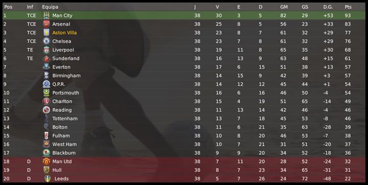 rafinha . Postado 21 de Julho 2009 Denunciar Postado 21 de Julho 2009 parabwens pela classificação na UCL.. na liga, eua cho péssimo quando um clube dispara assim.. vai ser dificil alcançar o city de novo Citar