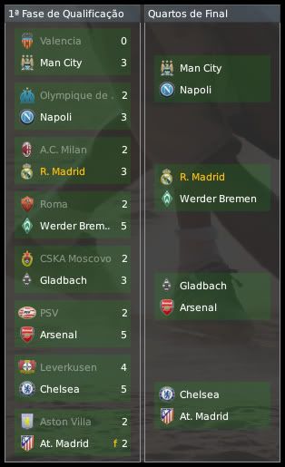 Bruno Trink Postado 17 de Agosto 2009 Autor Denunciar Postado 17 de Agosto 2009 Vai ser campeão da Liga.. e da UCl.. Pena ter perdido pro Zaragoza. É legal ser campeão invicto, mas nem é o importante. Quero ganhar tudo! Mas esse campeonato espanhol tá muito fácil :lol: Pior que está mesmo mais fácil do que eu imaginava... Me atualizando.. que bela campanha ta conseguindo fazer no Real.. ta lambendo todos os adversarios... será q pinta a trplice coroa? Será?! É o que eu pretendo! 19.03.2022 A temporada está terminando e continuamos na briga para conquistar a Tríplice Coroa. Na Copa do Rei, como esperado, não tivemos vida fácil no clássico madrilenho. Um belo jogo no Vicente Calderón, em que Husson marcou logo no início, mas o Atletico virou com Cardini e Coutinho, ainda no primeiro tempo. Sofiane Feghouli, que ainda não está no mesmo ritmo do resto do elenco, empatou aos 19 da segunda etapa e ainda tivemos chances para virar. Com os dois gols feitos fora de casa, tínhamos uma pequena, mas importante, vantagem para o jogo no Bernabéu. Ainda bem, pois cansamos de perder gols, a pontaria não estava calibrada, e o 0 a 0 nos levou à final. O adversário será o Betis, que surpreendeu e bateu o Barcelona nos pênaltis, dentro do Camp Nou. O adversário na UEFA Champions League era tão difícil quanto. O Milan é o líder da serie A e tem um time muito forte. Estudei alguns jogos do rubro-negro e resolvi fazer mudanças no esquema de jogo da equipe. O rossonero joga com duas linhas de quatro e Pato e Paloschi no ataque, mas os dois laterais avançam muito. Jogar com três zagueiros seria abrir duas avenidas para Cozzolino, o melhor lateral direito do mundo, na minha opinião, e Eser. Nosso bom e velho 4-5-1 neutralizou bem o ataque milanês e equilibrou a partida no San Siro. O empate se manteve até o final quando, nos acréscimos, um pênalti bobo deu a vitória ao Milan. Eles vieram ao Bernabéu com uma vantagem interessante, afinal, se fizessem um gol, nos obrigariam a marcar três. Mas, dentro de nossa casa, quem manda somos nós. Voltei ao esquema com três zagueiros justamente para mostrar isso para nosso time. Em campo, eles corresponderam plenamente e abriram três gols sobre o poderoso Milan. Cozzolino diminuiu ainda no primeiro tempo numa belíssima cobrança de falta, mas conseguimos suportar bem a pressão milanesa no segundo tempo e ainda tivemos chances para ampliar. Mas nem precisávamos e, com a vitória, avançamos para as quartas de finais para enfrentar o Werder Bremen, líder da Bundesliga. Tenho tentado resolver dois problemas que estávamos começando a viver com apenas uma medida. Os jogadores considerados titulares estavam perdendo a motivação ao enfrentar adversários teoricamente mais fracos na Liga. Enquanto isso, os reservas estavam um pouco insatisfeitos porque quase não atuavam. Assim, os motivados reservas tem jogado a maioria dos jogos na Liga, a exceção dos clássicos. Nesse período, por exemplo, os titulares só jogaram contra o Barcelona e, muito empolgados, abriram 5 a 0 no primeiro tempo e, no final, conseguiram uma bela goleada no maior clássico da Espanha. Enquanto isso, os reservas venceram todo mundo, inclusive o Betis, fora de casa. Assim, continuamos caminhando a passos largos e tranquilos para a conquista do título espanhol. Com treze pontos de frente e faltando treze jogos, continuarei nesse esquema e o foco será total no título continental. Citar