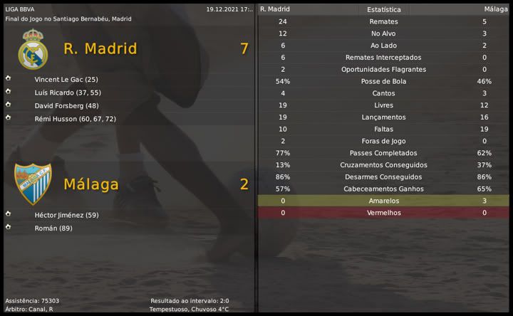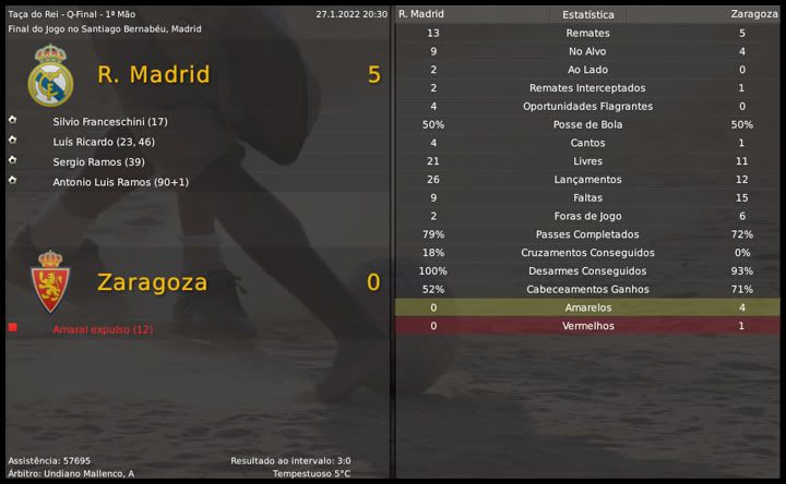 Bruno Trink Postado 11 de Agosto 2009 Autor Denunciar Postado 11 de Agosto 2009 Li tudo e estou acompanhando, parabéns pela história :thumbsup: Valeu, acompanhe sim!!! :) 02.02.2022 Demorou, mas caiu. Foram trinta e quatro jogos de uma invencibilidade que se encerrou na derrota para o Zaragoza, no La Romareda. Ninguém gosta de perder, ainda mais depois de tanto tempo, mas a verdade é que trocamos essa invencibilidade por um final de temporada mais equilibrado. Com, quase sempre, dois jogos por semana, estou optando por fazer um rodízio no elenco. Dependendo da sequência de jogos, eu escalo titulares ou reservas. Foi assim quando fizemos os dois jogos com o Valencia pela Copa do Rei, tendo o Racing no meio deles, pela Liga. Passamos pelo Valencia, com o time titular, de forma bem semelhante à disputa da Supercopa Espanhola. Empatamos no Nuevo Mestalla por 1 a 1 um jogo que poderíamos até ter vencido mas conquistamos a classificação para as quartas de finais em casa, vencendo por 3 a 1. Enquanto isso, os reservas golearam o Racing em Santander. Da mesma forma, batemos o Getafe no Coliseum Alfonso Pérez, preparando os titulares para enfrentar o Zaragoza. Ao contrário das fases anteriores, fizemos o primeiro jogo no Bernabéu. A expulsão do lateral direito Amaral bem no começo da partida facilitou bastante o que seria uma dura tarefa. Os gols foram saindo naturalmente e, no final, a impactante goleada nos deu uma vantagem muito boa para o jogo de volta. Foi por causa dessa vantagem que eu preferi não submeter os titulares a uma desgastante viagem de quase 300 km e um risco desnecessário de lesões. Os reservas até que não jogaram mal, mas [url=http://i280.photobucket.com/albums/kk161/brunotrink/cidadaomundo/2122/jogos/20220202_zaragoza.jpg]sucumbiram a uma melhor qualidade do time dirigido por Bruno Labbadia. Continuando o caminho de pedreiras na Copa do Rei, nosso adversário na semifinal será o rival Atletico, enquanto Barcelona e Betis disputam a outra vaga na final. Como os reservas vem dando conta na Liga, estamos só nos distanciando na ponta da tabela, enquanto os adversários brigam e tropeçam. Chegamos ao final do primeiro turno com 11 pontos de vantagem sobre o Valencia, segundo colocado. A continuar assim, poderemos nos concentrar mais na disputa da Champions, que recomeça no próximo mês. Citar