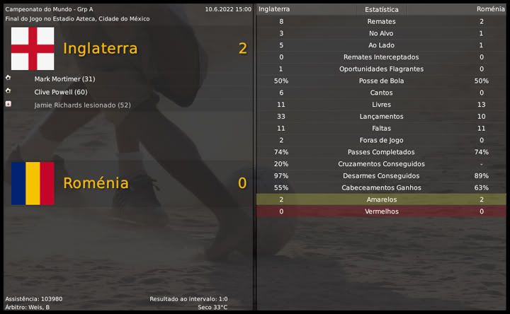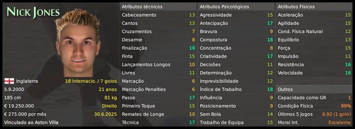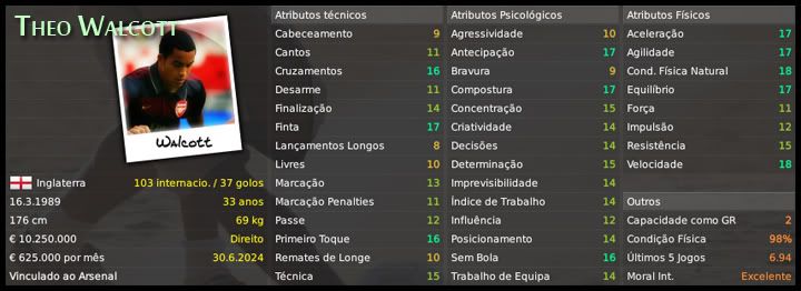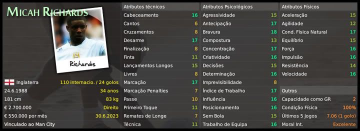 Bruno Trink Postado 22 de Agosto 2009 Autor Denunciar Postado 22 de Agosto 2009 É campaão, parabéns pela tríplice coroa conquistada, no Espanhol era quase certo, na Copa Del Rey, também Mas na Champions, o vovô fez milagres meu filho!!! CR37 te salvou 2 vezes, merece ser lendas ou pessoal favorito do Real Que desempenho dele E infelizmente, Casillas vai largar as chuteiras, tomara que consiga renunciar (?) a sua decisão! Quem diria, CR37 me salvou mesmo, duas vezes, mas ainda não foi suficiente pra entrar como favorito do Real. O Casillas já não é mais o mesmo, quase não te jogado, mas acho que ele ainda fica mais uma temporada. parabens pelos 3 titulos trinK!! Valeu, Rafinha!!! 25.06.2022 A torcida pode celebrar bastante a conquista da Tríplice Coroa, mas eu não. Não pude nem comemorar a liderança do Quadro de Honra mundial de treinadores. Ainda envolvido com as últimas rodadas da Liga, eu já estava conversando com meus auxiliares para definir a convocação do English Team para a Copa do Mundo. Tinha um problema grave para resolver: Evan Robinson, eleito melhor jogador do mundo no ano passado, estava fora da Copa, com uma ruptura da face posterior da coxa. Quem acompanhou as últimas convocações, não se assustou muito com a lista para a Copa, apesar de uma ou outra novidade. Goleiros: Richard Cullen (Aston Villa) Chris Rayner (Tottenham) Stuart Sainsbury (Liverpool) Defensores: Micah Richards (Man City) Dean Warner (Chelsea) Chris Connolly (Bolton) Kenny Gill (Aston Villa) Jamie Richards (Aston Villa) Derek Miller (Juventus) Joe Mattock (Man City) Volantes: Aaron Webster (Milan) Aaron Hill (Arsenal) Kevin Roberts (Inter) Meias: Andy Travers (Man City) Mehmet Ekici (Aston Villa) Fabian Delph (Tottenham) Adam Everitt (Everton) Theo Walcott (Arsenal) Clive Powell (Barcelona) Atacantes: Mark Mortimer (Everton) Nick Jones (Aston Villa) Angus Bryant (Sunderland) Craig Baker (Juventus) Esses são os 23 jogadores que tentarão, junto comigo, o bicampeonato mundial. Como campeões, fizemos o jogo de abertura contra a Romênia, no Estádio Azteca, para mais de cem mil torcedores. Eu tinha apenas uma dúvida para escalar o time titular. Ekici vinha jogando, com Andy Travers aberto pela esquerda, mas Clive Powell voou nos treinamentos antes da competição e resolvi começar o jogo com ele. Vencemos o nervosismo tradicional, Powell foi o melhor em campo e conseguimos uma importante vitória na estreia. Perdi Jamie Richards para o segundo jogo, contra Angola, mas Derek Miller quase não teve trabalho com o ataque angolano. Vencemos bem por 3 a 0 e conquistamos, antecipadamente, a vaga para a próxima fase. Fechamos a fase de grupos contra o Chile, uma partida bem mais equilibrada. Jamie Richards já estava com condições de jogo, mas preferi deixá-lo de fora por causa do cartão amarelo, assim como fiz com Dean Warner. A seleção chilena foi um adversário duríssimo e a partida foi igual até quase o seu final. Estávamos com muita dificuldade de furar a defesa deles e eles ainda eram perigosos no contra-ataque. Aos 26 minutos, tirei Mortimer para colocar Angus Bryant, atacante alto do Sunderland, muito bom no jogo aéreo. Menos de dois minutos depois, ele fez o gol, em sua primeira partida pela seleção, completando um cruzamento de Mattock. Por ironia, foi um cruzamento rasteiro. Nick Jones ampliou logo depois, dando números finais à partida. Pela frente, nas oitavas, tivemos os americanos, que passaram, sem muita dificuldade, em segundo no grupo do Brasil. Com Richards e Warner de volta, mas sem Mattock, contundido, começamos muito bem a partida, com um pênalti de Subotic em Nick Jones. Kevin Roberts cobrou bem e fez 1 a 0. Os americanos marcavam muito duro e, antes dos 15 minutos, já tinham acertado, com certa virilidade, três jogadores nossos. A partida foi fácil, nossa grande dificuldade foi acertar o gol de Josh Lambo, além de fugir das faltas. A verdade era que estava torcendo para o jogo terminar logo, pois estava vendo a hora que ia perder algum jogador. Nem foram muitas faltas, mas todas bem duras e o árbitro foi bem conivente. No final, nenhum ferido. E teremos a reedição da final da Copa passada nas quartas de finais. A Alemanha passou pela Áustria e será nosso adversário, novamente no Estádio Azteca. Nos outros jogos teremos Brasil x Holanda, Itália x México e Nigéria x França. A Argentina, mais uma vez, ficou pelo caminho, ao perder para os nigerianos nos pênaltis. Citar