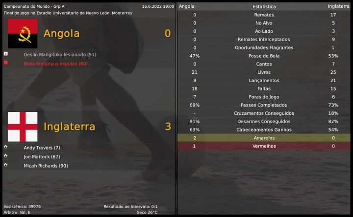 Bruno Trink Postado 24 de Agosto 2009 Autor Denunciar Postado 24 de Agosto 2009 Porra, Angola classificou ??? Onde o Mundo foi parar... Classificou bem, tirando os adversários fáceis, mas agora que fica bonito, as melhores seleções do mundo enfrentando-se, espero o English Team na final hein... E os Muchachos argentinos ficaram para trás... É a nova ordem do futebol! :) Parabéns pelos títulos no Real, e essa Copa vai ser dos ingleses.. Será?!?! Será?!?! 10.07.2022 Não menosprezando os adversários anteriores, a Copa iria começar de verdade agora. Das grandes seleções, apenas a Argentina, eliminada na fase anterior pela Nigéria, e a Espanha, que nem se classificou para a Copa, não estavam entre as oito melhores. A primeira da fila seria a Alemanha, reeditando a final de 2018. A expulsão de Ömer Yildiz, antes ainda do final do primeiro tempo, facilitaria, teoricamente, o jogo para nós, mas Dietmar Völker fechava o gol. Só conseguimos marcar na segunda etapa, com Micah Richards em jogadinha de escanteio. Enfrentamos, na semifinal, a França, que passou fácil pela Nigéria. Na outra semifinal, Brasil e Itália, que derrotaram, respectivamente, Holanda e México. Do lado francês, alguns comandados meus, Husson, Le Gac e Feghouli, além de Karim Benzema, que jogou comigo no Villa. Do lado de cá, os jogadores já sabiam da minha decisão de deixar o comando do English Team ao final da competição e me prometeram o título. A maioria deles chegou à seleção pelas minhas mãos e, por isso, eram extremamente gratos. Mas não ia adiantar só a gratidão, eles teriam que jogar mais que os franceses. Le Gac mostrou o cartão de visitas, mas Cullen defendeu. Depois desse lance, a partida seguiu muito disputada, mas sem chances para nenhum dos lados. Até que, na primeira oportunidade para nós, Walcott deu belo passe para Nick Jones que avançou, brigou e passou por Situ e bateu forte, no alto, sem chances para Rémy Riou. Clive Powell fez falta em Feghouli e recebeu um cartão amarelo que o tiraria da final, se passássemos pela França. Mas os azuis forçaram em busca do empate ainda antes do intervalo. Cullen salvou dois ataques, mas, nos acréscimos, Ugo Dietrich acertou um chute improvável, numa cobrança de falta lateral e surpreendeu Cullen. Sendo sincero, o empate era o resultado mais justo pelo que as duas equipes apresentaram nos primeiros 45 minutos. No começo da segunda etapa, a França esteve até mais perto da virada, com Husson e Benzema desperdiçando chances que normalmente eles não perdem. Acontece que, no futebol, algumas regras são clássicas. Kevin Roberts cobrou escanteio e Micah Richards subiu muito, dividindo com Riou, e fez 2 a 1. A França sentiu. Powell quase ampliou cobrando falta, mas a bola passou muito perto. Troquei Mortimer e Walcott por Craig Baker e Adam Everitt, apostando nos contra-ataques. O meia direita entrou com tudo. Em três minutos, marcou duas vezes e matou a partida. Gabriel Obertan ainda diminuiu nos acréscimos, mas nada que diminuísse nossa festa. O Brasil teve dificuldades para vencer a Itália, mas faria conosco a final esperada por muitos. A seleção hexacampeã contra a sensação dos últimos anos. Nós sem Clive Powell, eles sem o lateral direito Erivaldo. Vágner Mancini surpreendeu ao deixar Rafael Carioca de fora para escalar o volante do Valencia, Daniel. Para o lugar de Powell, eu resolvi voltar à escalação de antes da Copa, com Andy Travers aberto pela esquerda e Mehmet Ekici de volta ao meio de campo. E foi ele quem abriu o placar logo aos dois minutos. Ekici cobrou escanteio da direita mas Marco Antônio rebateu. A bola voltou para o meia avançou pela lateral, entrou na área e, mesmo sem ângulo, abriu o placar. A vantagem durou muito pouco. Daniel passou para Keirrison que driblou Jamie Richards e abriu na direita para Valdomiro. O lateral reserva avançou e empatou ao bater cruzado. O jogo esfriou até Mark Mortimer resolver decidir. O atacante não tinha feito ainda uma boa atuação nessa Copa e vinha sendo muito criticado pela imprensa. Aos 30 minutos, ele invadiu e nos colocou novamente na frente. Antes da primeira etapa terminar, Andy Travers tabelou com Nick Jones na esquerda e cruzou para a área. Mortimer disputou com Marco Antônio e bateu no alto para fazer seu segundo gol. Veio o segundo tempo e, logo aos nove minutos, Walcott cruzou para a área e Travers bateu Valdomiro no alto e marcou o quarto, de cabeça. O panorama da partida não mudou muito. A seleção brasileira até que tentava, mas não conseguia nos ameaçar. A cereja no bolo veio aos 16 minutos, com o hat-trick de Mortimer, no escanteio cobrado por Ekici. Mancini ainda procurava alternativas, colocou Anderson e Pato nos lugares de Wamberto e Marquinhos. Mas nada adiantava. Leidimar entrou, depois, no lugar de Keirrison, e nem o forte atacante do Gladbach foi capaz de fazer nada. A festa era inglesa, mais uma vez. Seis anos e dois títulos mundiais, eu não tinha mais muito a fazer no comando do English Team. Chegou a hora da despedida e de me dedicar mais ao trabalho clube. Saio feliz, sensação de dever cumprido na maior honra que um treinador pode querer, treinar a seleção do seu país. Citar