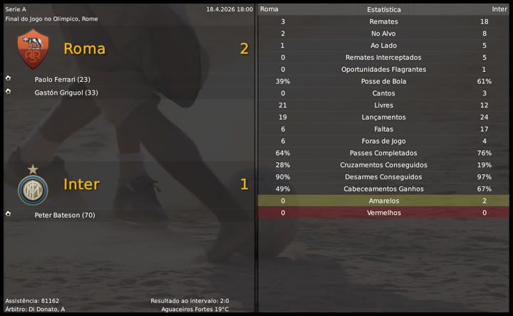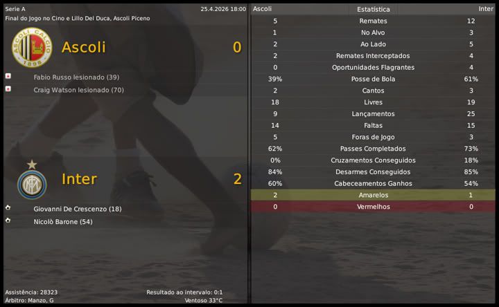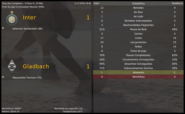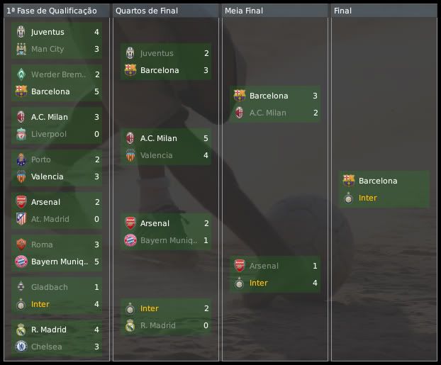 Bruno Trink Postado 15 de Outubro 2009 Autor Denunciar Postado 15 de Outubro 2009 Inter segue muito forte na liga e na UCL teremos um grande duelo pela frente. Vamos que vamos! :) 06.05.2026 Os frutos da grande temporada estão começando a ser colhidos. Chegamos à reta final da temporada e, dos três grandes títulos em disputa, já conquistamos um e estamos nas finais dos outros dois. A conquista da serie A, do jeito que se desenhou, era questão de tempo, de saber em que rodada aconteceria. Na segunda metade do campeonato, já estava escalando times mistos para enfrentar as equipes menores e os reservas davam conta tranquilamente. Vez ou outra, colocava força máxima em campo e foi assim que destruímos a Juventus no Giuseppe Meazza. Esse foi o último jogo em que isso aconteceu, já que, com o bicampeonato muito próximo, resolvi concentrar os titulares para a disputa da Champions. Assim, seguramos o empate no derby e perdemos a invencibilidade no ano para a Roma, uma partida em que até poderíamos ter vencido. Na rodada seguinte, no entanto, derrotamos o Ascoli e pudemos comemorar o título nacional. O foco, entretanto, era na UEFA Champions League, título que escapou na temporada passada. Todos estavam chamando de final antecipada a disputa contra o Real Madrid pelas quartas. Afinal, as duas equipes estão sobrando nos respectivos campeonatos nacionais e são consideradas as melhores do mundo. O primeiro jogo era em Milão e seria a nossa chance de abrir uma boa vantagem para administrar em Madrid. Sufocamos o time madrilenho, não os deixamos jogar, mas o gol teimava em não sair. A superioridade foi absurda, parecia jogo contra time pequeno, ataque contra defesa, mas conseguimos marcar apenas aos 39 minutos do segundo tempo. Michael Schikora tinha acabado de entrar e fez o gol da vitória. No Bernabéu, nossa missão foi facilitada pela expulsão de Andoni Sola logo aos 21 minutos de jogo. Santaniello marcou pouco depois e, assim, precisamos apenas tocar a bola e deixar o tempo passar para garantir a classificação para as semifinais. O Arsenal bateu o Bayern Munique e estava no meu caminho novamente, assim como na temporada passada. Jogando a primeira partida no Emirates, sofremos logo um gol, de Cristian Vivas. O time não se abateu e reagiu. Fabrizio Venturini empatou de cabeça e, no segundo tempo, Santaniello virou, num pênalti muito reclamado pelo time londrino. Reclamações à parte, vencemos por 2 a 1 um jogo muito equilibrado, que poderia ter pendido para qualquer um dos lados. Em casa, podíamos até perder por 1 a 0 que estaríamos na final. Nada disso. Um gol no comecinho do jogo e outro nos acréscimos de um jogo que dominamos completamente nos levaram à grande final, contra o Barcelona, no Estádio Kamps, em Mönchengladbach. Na Coppa Italia, empatamos o jogo de volta com o Empoli e faremos a final, no Olimpico, contra a Juventus, que derrotou o Milan. Citar