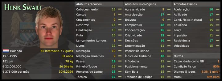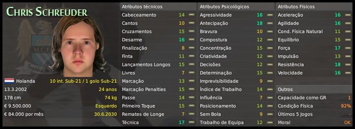 Bruno Trink Postado 21 de Outubro 2009 Autor Denunciar Postado 21 de Outubro 2009 gostei da ida pro city.. vai ter finalmente a chance de levar a premier!! boa sorte trink! Será?! Tomara que sim!!! 16.08.2026 Antes de acertar com os citizens, já estava nos meus planos voltar à Itália para assistir a Copa do Mundo. O que seria apenas um programa de um apreciador de futebol se transformou em uma oportunidade para negociar reforços para o City. A Copa da Itália foi uma competição interessante, com algumas surpresas mas poucas novidades. Uma das surpresas foi a eliminação da Espanha logo na fase de grupos, enquanto o Brasil saiu na fase seguinte. No final, os donos da casa decidiram contra a França e levaram o título na prorrogação com gols de quem? Antonino Santaniello. Aproveitei a viagem para negociar diretamente com alguns jogadores. Sempre acreditei que, assim, pessoalmente, o atleta sentia mais confiança na proposta e no fato de que o treinador estava realmente querendo a sua contratação. A principal deficiência do elenco do City era, com certeza, no ataque. Os únicos dois atacantes de ofício, McDermott e McKnight, são fracos e McDermott, inclusive, foi dispensado no fim do seu contrato. Se eu pudesse escolher um atacante, o nome seria o de Santaniello, que me impressionou bastante nas duas temporadas na Inter, mas o garoto tinha acabado de renovar seu contrato e não tinha a menor intenção de deixar Milão. Sendo assim, pagando a multa rescisória, tirei o guatemalteco Jorge Torres do Valencia. Com poucas chances no Milan, o holandês Patrick de Vet chega para ser seu reserva imediato. Para fazer dupla com Torres, trouxe da Inter aquele que, para mim, é o melhor jogador do mundo, mas que ainda não explodiu: Michael Schikora. O alemão de 29 anos jogou comigo como meia atacante, mas no City vai atuar mais à frente. Outra posição carente era a lateral direita, os dois jogadores que fazem essa função são zagueiros de origem. Tentei contratar Lee Daniels, titular do English Team, mas o Arsenal fez jogo duro. Com o Reading, a negociação foi mais fácil, mas precisei de quase €30M para acertar com o sueco Amir Lindström. Fechando a primeira parte do pacote, trouxe o volante Howard Wilkes, já que temos muitos meias, mas apenas Andy Travers, que é meia atacante, mas pode fazer a função mais defensiva. Começamos a pré-temporada forte e com uma nova e extensa comissão técnica. Além dos tradicionais treinos físicos, marquei vários amistosos para entrosar os reforços e acertar o sistema tático que eu imaginei para a temporada, um 4-4-2 em losango. Gostei do que vi. Schikora mostrou em campo que estávamos certos em adiantá-lo. José Leitão faz muito bem a ligação entre o meio e o ataque, assessorado sempre pelos meias centrais e pelos laterais. Apenas o guatemalteco Torres que ainda não mostrou a que veio, mas acredito muito nele. De qualquer forma, de Vet entrou bem sempre e pode substitui-lo sem problema. Schikora se contundiu no meio da pré-temporada e deve perder os primeiros jogos, contra o Liverpool, na Supercopa, e talvez a estreia na 3ª fase da Champions, contra o Galatasaray. A lesão de Zhang Kun, no entanto, é mais séria e o chinês só deve voltar em novembro. Com esse esquema de jogo que estou implantando, dois jogadores ficariam um pouco sem chances. O meia esquerda Stuart Davies, considerada a pior transferência da Premier League na temporada passada, até estava treinando para fazer a função de lateral, mas se empolgou quando surgiram propostas por ele. Acabou saindo para o Atletico de Madrid, onde acho que vai ter mais oportunidades. Para suprir sua vaga, contratei o holandês Chris Schreuder, ex-Ajax. Outro caso foi o do espanhol Andrés Blanco, que já mostravas sinais de que queria deixar o City até antes da minha chegada ao clube. Choveram propostas quando ele pediu para ser colocado na lista de transferências e ele acertou com o Aston Villa. Seu conterrâneo, o zagueiro David Rodríguez, reclamou, disse que estávamos enfraquecendo o elenco, mas eu deixei claro que pretendo trazer alguém para o lugar de Blanco. Independente disso, durante a pré-temporada eu senti falta de um reserva para Schikora no ataque e contratei o argentino Rubén Amat, do Banfield e da seleção sub-20 argentina. Além desse meia, não pretendo fazer mais contratações. A não ser que as sondagens sobre alguns de nossos jogadores se confirme e eu precise repor. Acho que o plantel que temos é bom o suficiente para conquistar o último objetivo que me falta. Citar