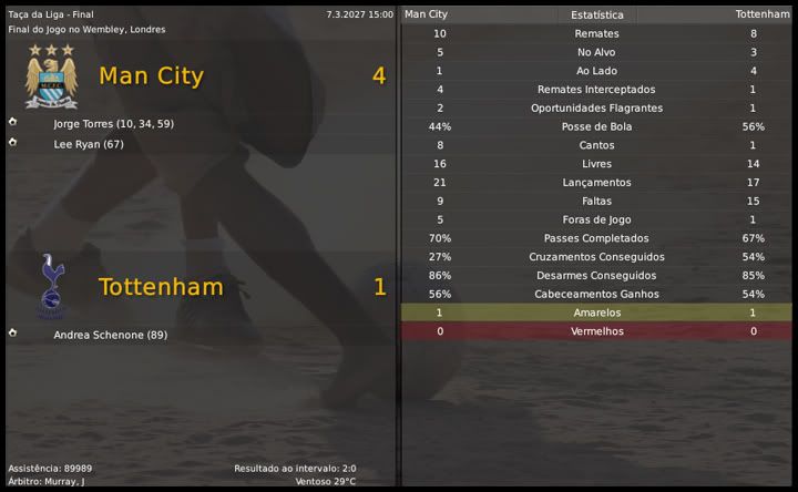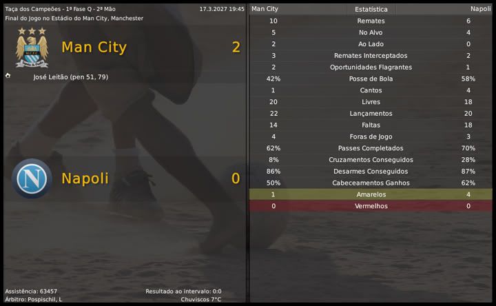Bruno Trink Postado 30 de Outubro 2009 Autor Denunciar Postado 30 de Outubro 2009 Atacante da Guatemala MITO! Tá mantando em tudo, com a Inter, fez bonito ao fim da temporada, e agora com o City, tá que tá, bonito de se vêr! Simbora Trink! O Torres é sinistro mesmo, mete gol de tudo quanto é jeito! 20.03.2027 Há muito tempo eu não vejo uma Premier League tão pouco equilibrado. Na verdade, o campeonato até está equilibrado... do City para baixo. Faltando dez rodadas para o final, nós, com um jogo a menos, lideramos com 20 pontos na frente do Arsenal. Se existe alguma disputa, é pelas vagas para as competições européias da próxima temporada. A campanha é mesmo impressionante. Vinte e quatro vitórias e três empates, melhor ataque e melhor defesa, artilheiro do campeonato. Não satisfeito, depois de uma negociação estressante com o Bolton, trouxe o meia Lee Ryan para reforçar ainda mais o elenco. Fausto Catalano se cansou da reserva e pediu para sair na última semana da janela. Para o seu lugar, trouxe mais um holandês para o elenco, Henk Visser Até nas taças, onde normalmente escalo times mistos, estamos muito bem. Na FA Cup, depois de passar por Blackburn e Huddersfield, chegamos à semifinal, onde enfrentaremos o Aston Villa. Com a direção dando menos importância, fomos campeões da Carling Cup. Depois de passar com dificuldades pelo Reading na semifinal, Jorge Torres detonou o Tottenham em Wembley. Meu objetivo no começo da temporada era só vencer a Premier League. Com a disparada na liderança e com o título da Carling Cup, decidi que vou fazer o máximo para encerrar minha carreira conquistando todos os títulos possíveis no City. Para isso, vou com a força máxima na FA Cup e, principalmente, concentrar todos os esforços na disputa da UEFA Champions League. O primeiro adversário nessa batalha foi o Napoli. No San Siro, Wilkes, de cabeça, e Henk Swart marcaram e encaminharam a classificação. Duas semanas depois, em casa, José Leitão, muito assediado pelo Arsenal na janela de inverno, fez dois e a nova vitória por 2 a 0 nos levou às quartas de finais. O próximo da fila é o Zaragoza. Citar