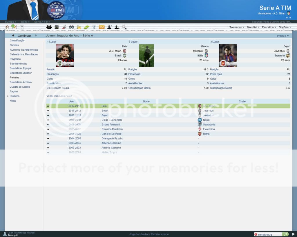 Jirimias Postado 20 de Abril 2009 Autor Denunciar Postado 20 de Abril 2009 Peguei as rédeas do Monopoli, mas já era tarde.Quando o time parecia ter tomado forma, as derrotas contra os grandes eram de placares normais e até conseguindo alguns resultados surpreendentes, o campeonato acabou e aí já não dava tempo de lamentar. Antes de aprofundar nos jogos, devo dizer que voltarei a jogar nos moldes de LLM, no entanto já não farei mais restrição às parcerias. Associazione Calcio Monopoli Rodadas antes do fim. Nos 13 jogos que anteciparam as rodadas finais do Calcio, tivemos uma pequena melhora: foram 4 vitórias, 4 empates e 5 derrotas.Um ponto apenas separava-nos do Genoa na briga para não cair, ficando a decisão para as rodadas finais Contra a Roma jogamos até razoavelmente bem, mas poderíamos ter aproveitado a precoce expulsão de Taddei.A qualidade da Roma era algo difícil de ignorar, mesmo com um jogador a menos, as poucas oportunidades dos visitantes deixava a nossa defensiva em pânico.A derrota por 1x0 acabou sendo justa pelo pouco perigo que levamos aos visitantes. Derrotar o Pescara era essencial para mantermos vivos na luta contra o rebaixamento, e era também obrigação.Mas o jogo foi complicado, o Pescara estava organizadinho em campo, e somente o talento de alguns de nossos jogadores poderia fazer a diferença, e foi exatamente o que aconteceu.Carbonaro e Salomon marcaram os dois gols em jogadas individuais e presentou a torcida com esta vitória. Para encerrar a sequência de jogos, enfrentamos a Fiorentina e fomos dizimados.Posso até dizer que o 4x1 ficou de bom tamanho pois fizemos por merecer mais uma daquelas largas goleadas comuns dos jogos contra os grandes. Na classificação, já era possível constatar o grande problema do Monopoli: a defesa, a mais vazada do campeonato.Com números negativos tão aparentes, o nosso saldo de gols era tão terrível quanto o do Pescara, sinal que um empate em pontos seria um desastre para nós. Estatísticas da equipe Associazione Calcio Monopoli As rodadas finais Promessa de fortes emoções, os quatro últimos jogos deste campeonato seriam longos para Monopoli e Genoa.Além de um confronto direto contra eles teríamos jogos contra Lázio,Juventus e Milan, e aí já era facilemnte explicado que somente um grande milagre poderia nos manter na Série A.E o milagre até aconteceu, mas como todo milagre precisávamos fazer a própria parte, e aí fizemos pela metade. O Genoa tinha pela frente os seguintes jogos: Eles levavam a vantagem de jogar contra o lanterna Cagliari na penúltima rodada e de jogar contra nós em seu estádio.Para nós, o confronto direto seria o que decidiria se poderíamos ainda esperar a manutenção... ...mas não foi bem assim. Vencemos a Lázio por 2x1, e ali ganhávamos três pontos inesperados, enquanto o Genoa empatava com o Napoli.Veio o confronto direto, e ali eu lancei uma variação tática próxima da utilizada na temporada anterior, mas um pouco mais lenta e de passases curtos: posse de bola era a nossa razão de viver a partir daquele momento.E a equipe viveu os seus melhores momentos de todos na Série A. Contra o Genoa, Digão conseguiu ser herói e vilão, mas foi o ser vilão dele quem acabou decidindo o jogo.A vitória do Genoa foi um balde de água fria, e a Série A um sonho para ser sonhado outra vez. Empatamos com a Juventus em 1x1 e tivemos na frente do placar, mas acabamos cedendo a vantagem, por pouco não vencíamos mais uma vez inesperadamente.O Genoa também empatou com o Cagliari, e depois perdeu para a Fiorentina... ...mas tínhamos pela frente o Milan, que precisava de uma vitória para ser campeão, já que a Inter estava na cola.Jogamos bem e até dificultamos um pouco as coisas, mas eles são superiores, e com um 3x1 garantiram o bicampeonato, enquanto nós experimentávamos o fracasso de voltar à Série B. Prêmios: Jovem jogador do ano | artilheiro Fracasso?? Se existe uma coisa que eu aprendi nesta vida e poderá ser útil neste FM, é que chegar ao topo requer esforço, e não tem maior esforço que levantar após a queda. Agora vejo o rebaixamento com bons olhos: com jogadores contratados enquanto o time este na Série A, teremos uma equipe capaz de conseguir a promoção de forma imediata;o clube vive um ótimo momento financeiro graças ao investimento nas categorias de base; com isso a diretoria já aceitou fazer uma nova expansão no estádio,melhoria nas condições de treinos e nas categorias de base.Com isso acredito que o clube cehgará à Série A com uma estrutura melhor do que na oportunidade anterior a experiência de ser promovido e depois ser rebaixado e lutar para subir novamente é uma nova experiência para mim no FM, uma dose extra de motivação. Citar