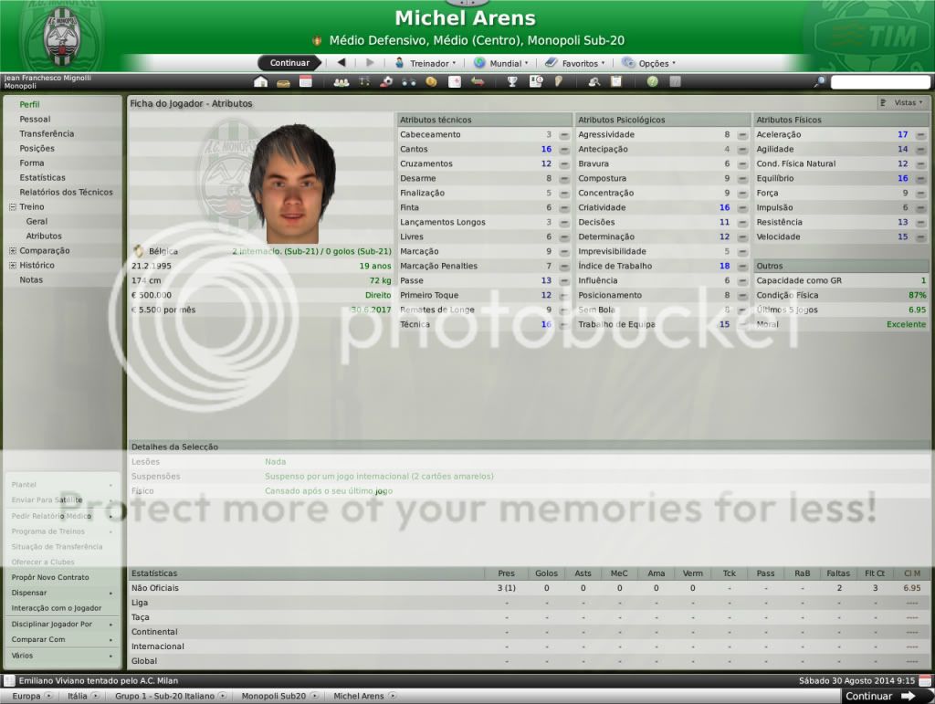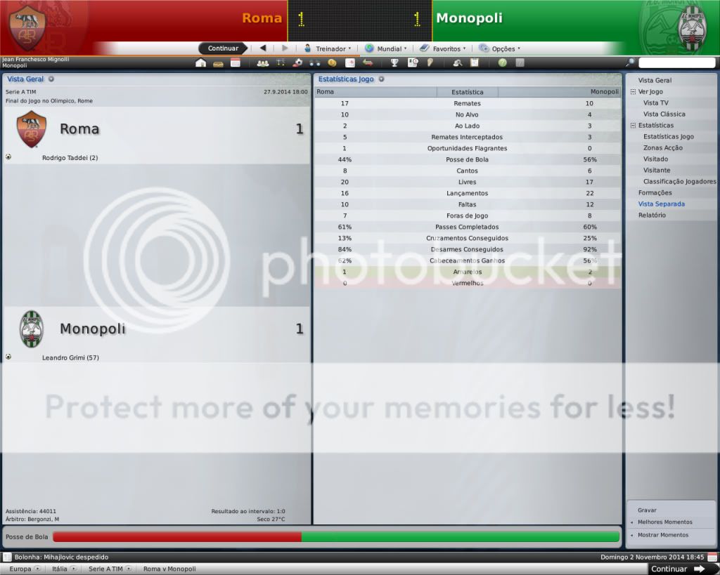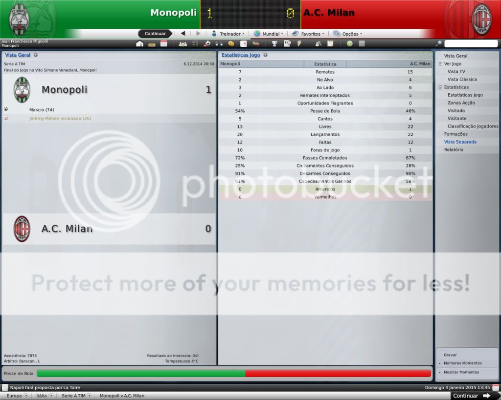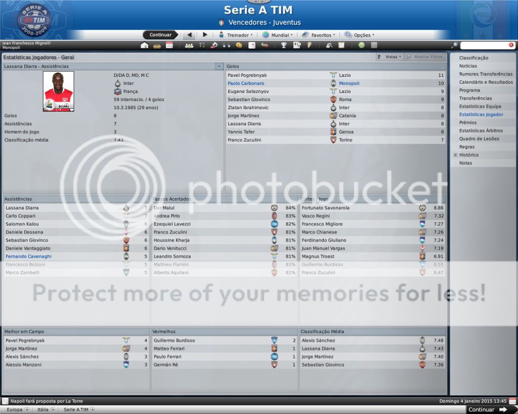 Jirimias Postado 6 de Maio 2009 Autor Denunciar Postado 6 de Maio 2009 Sobre o jogo da Sampdória: O importante, nesse momento, foi a classicação, mas a partir de agora sim, tem que começar a jogar pra valer. Vamos ver como o time se sai. As finanças sim estão em baixa, né? Os amistosos não ajudaram muito? Os recursos para transferências tendem a cair entao, torna-se preocupante essa situação já. Não dá para esconder que a atuação foi ruim,mas a vitória certamente foi boa, temos que melhorar. O time tem dinheiro,mas vai escapando à cada temporada pelos dedos, são gastos e não tem receita, a única receita é a venda de jogadores, mas que já chegou a um ponto que não é possível,pois não quero entregar futuros craques para sanar o problema financeiro.E agora vou deixar ficar vermelho e o time que faça empréstimo até ter um patrocinador, mais lugares no estádio e um fornecedor de material esportivo decente. Essas finanças....está mau, ainda por cima com a expansão do estádio... A coisa tá feia, e pior que o estádio dá uma mísera receita. Fiquei tentado com esse subtítulo. :heh: Não pode fazer isso, Jiri. O cara é o lado B da alma do Monopoli. O Monopoli tem uma baita base, de encher os olhos de qualquer grande italiano. hsuahsua vez em qdo dá para brincar com o subtítulo. Ah ele é muito vacilão, quero ver se ele volta com mais juízo para a outra temporada. Nossa divisão de base é boa mesmo, enquantos os grandes vão envelhecendo nós vamos garantindo o futuro. O fato do Monopoli estar se firmando como celeiro de jogadores mostra como está se firmando na Europa =D Logo logo, isso vai começar a dar frutos, tanto economicos como no nome do time italiano! \o/ Continua assim e em uns 3 anos, vais estar lutando com Milan e Juventus de igual pra igual! O caminho mesmo é as divisões de base, espero que esta dificuldade financeira não me obrigue a desfazer deles, um presidente desesperado pode começar a vender jogador .Já comecei a me preparar com cláusulas de rescisões bem mais pesadas.Ainda tenho pra receber alguns percentuais de transferências,isso tb pode ajudar. Coitado do chavalo..irá sempre ser reconhecido por "Selvagem", agora veremos se a selvajaria continua ou não no Frosinome... A capacidade do estádio finalmente completa, mas ainda é muito pequena..mas os teus adeptos a mostrarem estar sempre com a equipa ao esgotarem os bilhetes de época :D Agora é selvagem, não tem mais jeito hehe depois vou ver como vi ser o comportamento dele por lpa. Pelo menos a torcida não deixou na mão, pq a diretoria essa não tem ajudado muito, agora ocm esta crise financeira do clube uma nova expansão é quase impossível. Citar