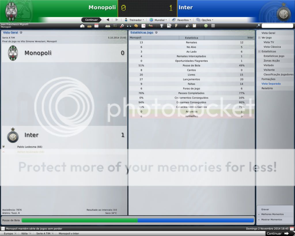 Jirimias Postado 8 de Maio 2009 Autor Denunciar Postado 8 de Maio 2009 O que sentiste após perderes os 2 primeiros jogos? "Outra vez não" :lol: Mas depois a equipa se acertou e conquistou um lugar seguro a meio da tabela, agora tens tudo para melhorar :) Carbonaro é mito mesmo, é o homem (juntamente com o treinador) que ergueu o Monopoli :D espero vê-lo brevemente na Selecção, ele bem merece :P e já agora é ele o jogador mais bem pago do plantel? É notável o crescimento deste clube, fizeste um belo trabalho até agora Jiri Parabéns ;) Só falta teres um estádio à altura do clube, porque de resto está muito bem :D Nem me fala,cara...foi exatamente o que eu pensei shuahsuhau, mas o time emlhorou e espero que mantenha uma fase regular, pra garantir a permanência. Carbonaro é mito, carregou o time de um lado a outro, e ainda assim é um jogador que custa ao clube menos de €50m mensais, Mascio é o mais caro,acho que recebe €185m. A parte doe stádio é que mais me desanima, achoq ue oc lube vai conseguir muitas vitórias dentro do campo e o estádio sempre será o mesmo, acho que termino o save sem ver o estádio da forma como deveria. Citar