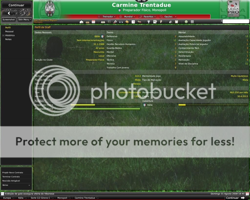 Jirimias Postado 14 de Fevereiro 2009 Autor Denunciar Postado 14 de Fevereiro 2009 To acompanhando aqui...ta mt bom Queria tira uma duvida: vc só dize q iria contrata jogadores indicados pelos olheiros, mas qd vc contrato o unico ate agora, n foi por indicação do olheiro, mas foi por um suposto interesse seu, e ai sim vc mando o seu olheiro prepara um relatorio...Vc só vai contrata por indicação do lolhero ou vc vai manda fz um relatorio de qm ele n indico, pra vc ai sim contrata(n sei se fico confuso hehhehe) Otra coisa é que se vc vai olha perfil de jogador ou não Ah, zico, achei algo em um forum gringo que explica melhor: Finding Players Real life managers do not have use of a 'Player Search' button, so this feature of the FM games is not allowed in a LLM game. Instead using scouts is the method you use to discover players. It is not the only way, however - if you play a team where a player kicks ass, then scout him. If you hear a media report about a player and like what you hear, scout him. Send your scouts on missions (using SWYCT - see below). Regardless of how the player came to your attention, no player can be purchased without first having had the once over by your scouts (of course, you do not have to listen to their advice however). Aí fala que quando jogadores aparecem na mídia, vc pode contratá-los desde que faça peça um relatório de seu olheiro antes da contratação. Se vc quiser saber mais do estilo pesquisa aí no Google, " pesquisar na web", Lower League Management que vc encontrará mais detalhes. :thumbsup: Paolo Carbonaro é muito superior a qualquer outro jogador que tu vai achar por aí, baita jogador mesmo, se o time não estiver jogando bem, faz um esquema pro time jogar em sua função, boa sorte! É isso mesmo fazer o time jogar em torno dele, vou ter que estudar uma forma de conseguir isso, :thumbsup: Citar