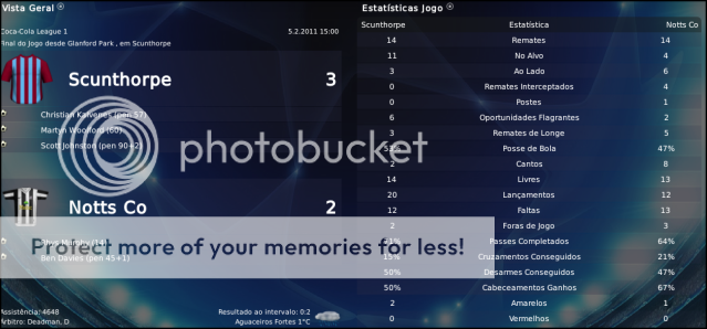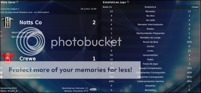 bks Postado 29 de Novembro 2009 Denunciar Postado 29 de Novembro 2009 Adeus, Arsenal! Por Phillips Um jogo épico. Talvez esse não seja o melhor adjetivo para o que aconteceu no dia 12.2.2011, mas o que aconteceu foi um verdadeiro milagre. A imprensa do país inteiro estava achando que o meu querido Notts eram favas contadas. Mas o legal do futebol é isso: não adianta achar, tem que ver para ter certeza. Eu, como todos os outros 20 mil 299 torcedores presentes em Meadow Lane, acreditávamos na vitória. O estádio estava tão cheio que não se podia ir ao banheiro, pois se não você perderia o lugar. O Arsenal, veio completo mesmo tendo um confronto importantíssimo contra o Bordeaux, pelas oitavas da Champions três dias depois. O Notts estava mais do que completo com seu 12º jogador em campo. Nosso treinador mostrou - se homem suficiente a ponto de não se submeter ao Arsenal. Está bem que ele não colocou o time para o ataque, mas também não recuou demais o time. E veja o que deu.. O primeiro tempo só deu Arsenal. O time de Londres era muito superior ao Notts, e sempre levava perigo. Mas o perigo não era concretizado, já que nossa dupla de zaga formada por Kanyuka e Withbread estava soberana pelo alto, e tiravam todas tranquilamente. O Arsenal criava as melhores jogadas com Fábregas, o médio espanhol estava batendo muito bem de fora da área e dava passes espetaculares. Num passe de gênio, ele deixou Eduardo da Silva livre para fazer o gol, mas Kasper fez milagre. Já pelo lado direito do ataque do Arsenal, estava ocorrendo o duelo dos opostos: Walcott, 22 anos, atacando e Jamie Clapham, 34 anos defendendo. A expriência estava ganhando, já que Walcott não passou nenhuma vez por Clapham. O primeiro tempo foi todo do Arsenal que realizou 10 chutes á gol contra apenas 1 do Notts. No segundo tempo, o Arsenal voltou mais ofensivo ainda. Aí, brilhou a estrela de Kasper Schmeichel: ele defendia tudo, fazia milagre, parecia que tinha mais do que um goleiro defendendo nossa baliza. Mas aí, o nome que será lembrado por muitos anos em Meadow Lane, Ben Davies, brilhou: puxando contra - ataque ele sofreu falta na intermediária. Ele mesmo bateu com maestria no cantinho de Almunia, para delírio da galera, que empolgou: "Onde o Notts joga, E treme até o chão Meadow Lane, é o caldeirão! Foi um amigo meu, brasileiro que, segundo ele fez essa paródia da música: "Salgueiro é o caldeirão". A torcida ainda comemorava o gol quando Ravenhill foi expulso, aos 71'. A partir daí, o Arsenal jogou na base do chuveirinho, e a zaga do Notts tirava tudo! Nos minutos finais então, bola pro mato que é jogo de campeonato! Felizmente, conseguimos a vitória e um milagre. Todos os jogadores estão de parabéns, pela garra e a vontade que jogaram. Nosso próximo adversário é o Totteham, mas a torcida não está nem aí para o resultado, já que conseguios o mais difícil. Eu gravei o jogo todo. Quem quiser baixar, clique aqui. O arquivo é muito leve. Extraia em: Meus Documentos/Sports Interactive/Football Manager 2010/matches. Falando agora de CCL1, não foi um bom mês para o Notts. Apesar de apenas uma vitória, um empate e três derrotas, o clube de Nottingham tem três pontos de vantagem sobre o Leicester. Contra o Scunthorpe, os Magies abriram 2x0 com Murphy e Ben Davies de falta. Depois, administrou a vantagem até o fim do primeiro tempo. Não sei o que o treinador disse, mas o time voltou muito relaxado, e aos 60', o jogo já estava empatado. A partir daí, o jgoo ficou lá e cá. Já nos acréscimos, o juíz marcou um penalty inexistente para o Scunthorpe que virou o jogo e venceu por 3x2 Na única vitória dos Magpies na CCL1 este mês, recebemos o Crewe. O Notts saiu na frente, com um gol contra de Davies. Mas como o Notts saiu na frente com um gol contra de Davies se Davies joga no Notts? É porque o Crewe tem o irmão de Ben davies, Adam Davies. No finalzinho do primeiro tempo, o Crewe empatou com King. Mas aos 65', O Davies do Notts bateu falta rasteira, e selou nossa vitória. Na tabela de classificação, o Notts está com três pontos de vantagem.