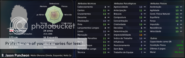 bks Postado 19 de Novembro 2009 Denunciar Postado 19 de Novembro 2009 Fizemos uma boa pré - temporada. Pegamos muitos times mais fortes que o nosso, e na minha opinião nos saímos bem. Poderia ser melhor, se não fossem muito perto um jogo do outro, ou se o tme já estivesse entrosado. Como tivemos muitas mudanças no time, o mesmo não rendeu tudo o que podia. Mas gostei da pré - temporada, pude experimentar táticas e jogadores. Darei destaque para o jogo contra o Chelsea, onde ficamos na retranca, e fomos muito bem. É verdade que fomos dominados, mas quase conseguimos um empate. Se não fosse um tal de Palermo, poderíamos ter empatado o jogo. Gostei muito do sistema defensivo do time, que trabalhou muito bem. Nossa nova dupla de zaga, está dando conta do recado. Nas transferências, recebi uma verba de 6M de euros, muita grana não? Mas gastei só a metade, e estou procurando um atacante que ganhe o campeonato para nós, pois não confio mais em Péricard. Contratei Neal Trotman eZak Whitbread para formar a nossa dupla de zaga. Kanyuka foi para o banco, mas poderá atuar na lateral direita. Para a lateral - direita, trouxe o lateral defensivo trouxe Seb Hines, que também pode atuar na zaga central. Na lateral - esquerda, como Clapham já está ficando velho, trouxe o francês Grégory Vidal, indicação do nosso olheiro e titular absoluto. Na temporada passada, quando precisavámos de um MC defensivo, ou um trinco, jogavámos com Bishop ou Ravenhill. Ravenhill não marca bem, mas sabe jogar. E Bishop é exatamente o contrário. Então, resolvi contratar um cara que marca bem e sabe sair pro jogo. Consegui tirar o marroquino Abderrahman Kabous do Blackpool, da Coca-Cola Champioship, por £1,5M. Como já tinha dito anteriornmente, queria trazer um extremo de qualidade, para que Davies pudesse jogar no meio - campo. Pesquisei muito, e achei Jason Puncheon listado no Plymouth e por pouco mais de meio milhão de euros, atuará com a camisa dos Magpies nessa temporada.