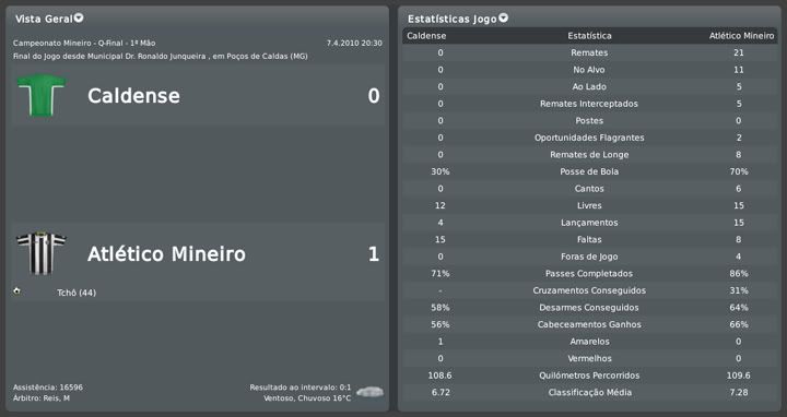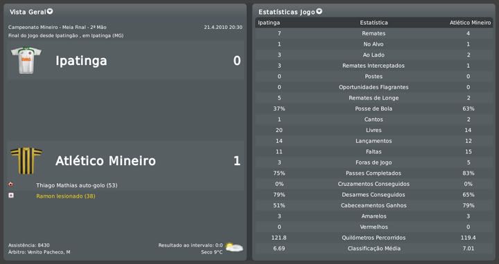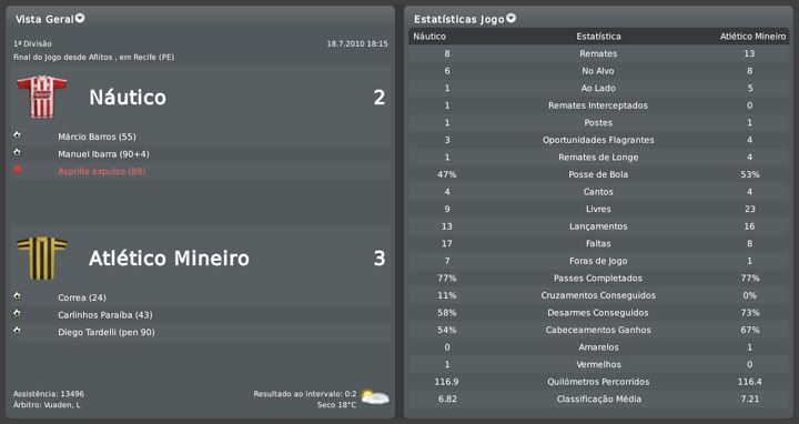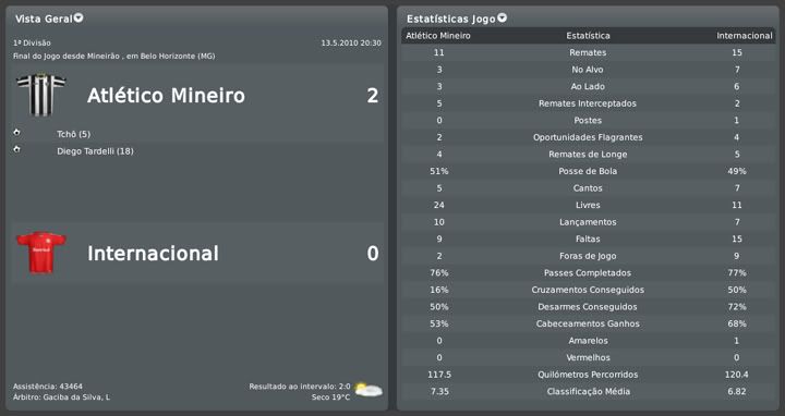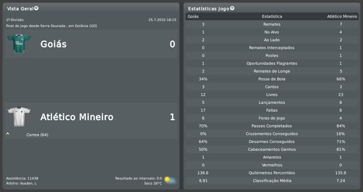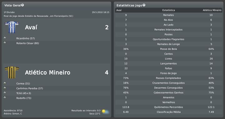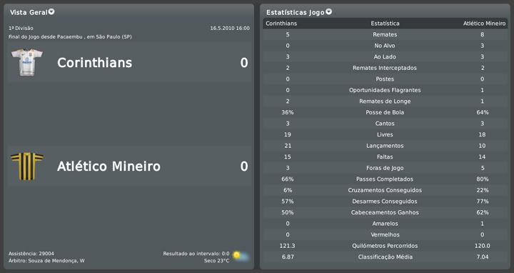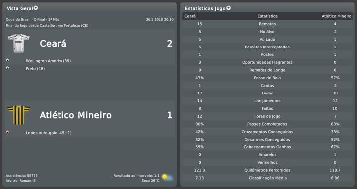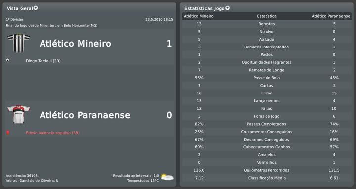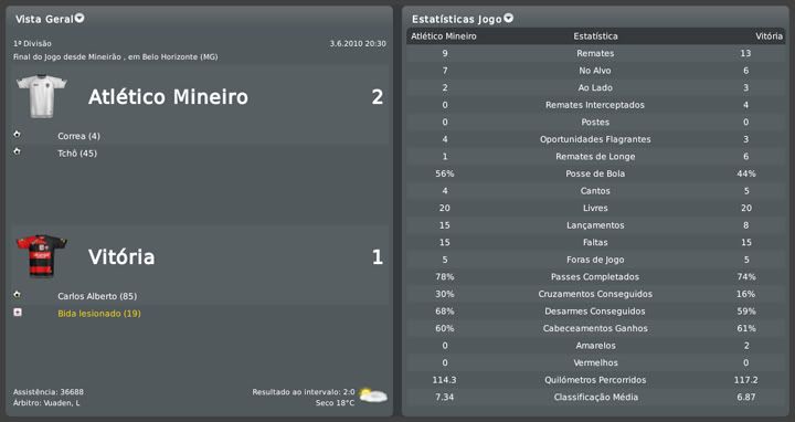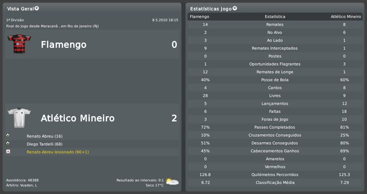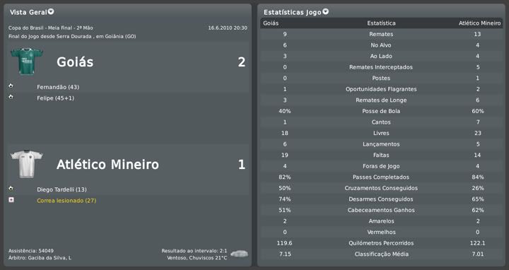 Bruno Trink Postado 2 de Fevereiro 2010 Autor Denunciar Postado 2 de Fevereiro 2010 Junho e Julho/2010 Aproveitei os meses de junho e julho para intensificar a limpeza no elenco do Atlético. Já vinha tentando vender ou emprestar os jogadores dos times reserva e sub-20 e alguns, como o Marcelo Nicácio, Felipe Cordeiro, Hugo e Júnior já tinham acertado suas saídas. A limpa se estendeu aos jogadores do plantel principal que não estavam sendo muito aproveitados e, assim, saíram Alessandro, Ricardinho, Coelho e Dodô. Renan Oliveira foi emprestado e queria fazer o mesmo com o lateral esquerdo Luís Gustavo, mas surgiram propostas interessantes e ele acabou saindo em definitivo. Só não esperava a saída do Correa. Seu empréstimo ao Dinamo Kiev terminaria no dia 31 de julho e eu adiei ao máximo a proposta de renovação para tentar condições mais favoráveis. Depois de muita negociação, os ucranianos aceitaram €200m pelo empréstimo até o meio do ano que vem mas, surpreendentemente para mim, o próprio jogador não aceitou continuar emprestado. Perdemos o líder das assistências, o homem das bolas paradas. Essa saída do Correa no final de julho me pegou desprevenido. Menos mal que a janela de transferências no Brasil se estende por bastante tempo. Já estou de olho em um ou dois jogadores para trazer para o seu lugar. Antes disso, já tinha trazido outros três jogadores, todos principalmente por causa do ótimo custo-benefício. Com as saídas do Coelho e do Luís Gustavo, Thiaguinho e Ramon ficaram sem reservas nas laterais. Por isso vieram Diogo e Sylvinho, ambos sem contrato. O meia Cícero, que tinha os direitos econômicos ligados ao Tombense, teve seu contrato de empréstimo ao Hertha encerrado. Aproveitei o bom relacionamento com o clube, que é nosso satélite, e trouxe o jogador a um custo muito razoável. Fizemos apenas seis partidas no período de dois meses devido a parada para a Copa do Mundo. Coincidências do futebol, três dessas partidas foram contra o Goiás. Contra um concorrente direto ao título brasileiro, não conseguimos nada mais que um empate em casa. Sentimos um pouco a falta de ritmo de jogo no retorno em julho, mas conseguimos as vitórias fora de Minas. Vitória [C] São Paulo [C] Goiás [C] Goiás [F] Náutico [F] Goiás [F] Ainda estamos invictos e abrimos uma bela vantagem na liderança, mesmo com o empate no Mineirão. Vamos ter uma sequência complicada agora começando pelo clássico mineiro. É um campeonato brasileiro diferente, sem os paulistas no bolo de cima. O Corinthians, no ano do centenário, briga lá embaixo e ainda demitiu o Mano Menezes. Já sabia que o Goiás não seria um adversário fácil. Hélio dos Anjos arma um 5-3-2 muito difícil de ser furado. No Mineirão, conseguimos marcar logo no começo com Rodolfo de cabeça, mas eles conseguiram levar um empate importante para Goiânia. Lá, sentimos a falta dos jogadores convocados para a Copa do Mundo e ainda perdemos Correa no início do jogo. Saímos na frente mas vacilamos no final da primeira etapa e demos adeus a Copa do Brasil. Na final, já depois da Copa do Mundo, o Goiás bateu o Fluminense e levou o título. Próximo post: Agosto/2010 Citar