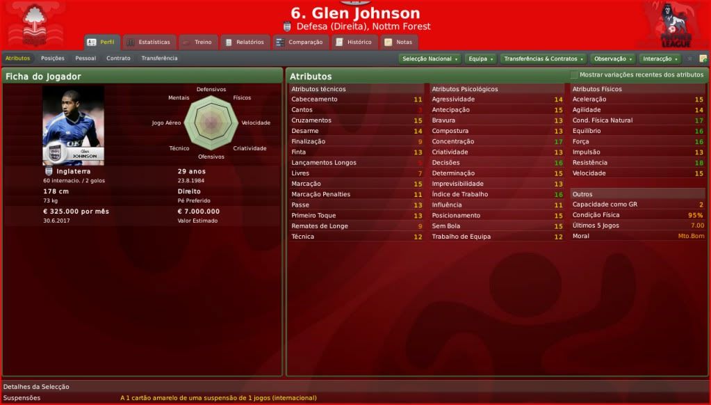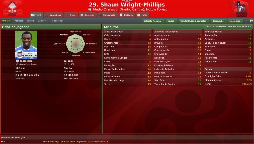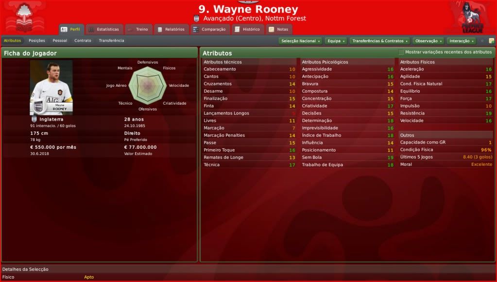 Jirimias Postado 3 de Maio 2010 Autor Denunciar Postado 3 de Maio 2010 Coincidiu de começar a ter a síndrome de um English Team de a Inglaterra te contactar. :heh: Contratou muito bem, dando uma mini-reformulada no time, vendeu o Cardozo, isso pode ser um revés. Mas vamos ver se tu copa tudo com esse elenco, seria um bom exemplo para os outros times da Inglaterra. hehe feliz coincidência. Seria legal ganhar tudo com este time, mas não será fácil.Cardozo por enquanto não faz falta. osssa,que timinho... wayne concerteza vai deitar,sem falar no defoe.Gostei do ounoha.Mas como ta na seleão inglesa,tu deves conhecer metade do elenco pois todo o forest deve tar na seleçao! BS Eu vou usar esta experiência com o time para fazer uma seleção forte, o antigo treinador parecia gostar muito de nomes e não dava muitas chances a novidades. Porra, montou um TIMAÇO na minha opinião. Acredite, Rooney nem é tão mito assim. Claro que ele é muito bom jogador, mas tem pelo menos uns 5 atacantes na frente dele. Mas aqui, nesta segunda temporada ele vem destruindo. Ele demora um pouco para se adaptar ao novo técnico. Vamos ver como se sai na Inglaterra. Vou mostrar os primeiros jogos dele no post, o cara é incrível, uma faclidade de colocar a bola no ânulo, de bater na saída do goleiro, erra pouquíssimo, só perde para o Cardozo nos remates de fora da área. Rooney? PQP! Ainda bem que não ficou com o Cardogol, ia ser sacanagem! Já estou vendo que vais ter muito caneco pra levantar! Boa sorte Jiri! Ia ser mesmo hushuhsuahusa Vlw,tec! Citar
