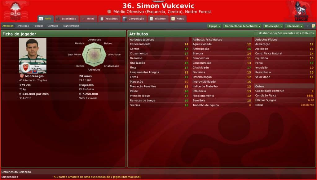 Jirimias Postado 1 de Maio 2010 Autor Denunciar Postado 1 de Maio 2010 O que falar? O time foi perfeito, venceu tudo, exceto a FA Cup, mas isso é relevante, já que venceu o próprio City na UCL. Na Carling foi emocionante e pela Premier League só consolidou toda a temporada. Entrou na Galeria de Honra, caramba, isso é impressionante. Parabéns, e que venha o Mundial! Não deu para ganhar tudo, mas ficou de ótimo tamanho, vencemos o City na competição certa. A temporada da Premier foi bem tranquila, tivemos dificuldades apenas de motivação nos ultimos jogos, mas foi muito boa a temporada. Tem o Mundial, ainda nem vi quem da América do Sul que está por lá. Arrebentou na temporada. Na EPL o desempenho foi excelente. A equipe é uma máquina de marcar gols e aparentemente sofre muitos, mas está abaixo da média de 1 por jogo e penso que é uma boa média, afinal o time mara 2,71 por partida. :thumbsup: Na Carling a virada foi fantástica. Emocionante. Na FA, grande vitória do City, que no entanto perderia o troféu mais importante. NA UCL não esperava que tivesse tantas dificuldades nas oitavas contra o Atlético. Depois foi passando com sobras até a final, que foi sofrida até o fim. Parabéns pelo título. Renovação no elenco? Estava pensando quando você começaria a gastar dinheiro para fazer isso. Chegou o momento. Não se esqueça de mostrar as nacionalidades dos jogadores para vermos como o time ficará. Vai investir em jogadores "internacionais" ou em futuros jogadores do "English Team" Esta temporada foi demais mesmo.Fez as contas aí,né? Hehe o time foi bem ofensivo, e Cardozo com Dzeko nem podia ser diferente. As copas domésticas mostraram ser um problema para esta equipe, por isso na próxima temporada o bônus para elas será altíssimo, como para todas as outras competições, ainda bem que pelo menos levamos uma. Os jogos contra o Atlético foram épicos, time enjoado, por pouco não vencia-nos em casa, mas dali para frente foi tranquilo, exceto com o City que não facilitou. Pode deixar que vou deixar atualizadas as nacionalidades no post, e sobre estes jogadores eu vou atacar pelas duas frentes: reforçar com nomes já consagrados ( um deles é incrível) e também trabalhar com os jovens que vinham atuando no sub-18 e outros que virão. Quem vai parar essa máquina? IMPOSSÍVEL! :specool: Deu um belo troco no City, definitivamente levou a melhor :lol: E na Inglaterra, reina absoluto. Por isso que estou tentando dar um outro rumo ao save, este time já fez o que podia fazer, agora é hora de renovar.Sobre o City realmente levamos a melhor hehe. Um objetivo bem motivante pra quem já ganhou tudo com o Notts! Quero ver quem fará parte do novo Notts! E parabéns pelas conquistas. Vão ajudar bastante nessa nova fase. Sim, dá um novo gás, alguns reforços vão surpreender. Vlw! Sensacional! Parabéns pelas conquistas e infelizmente, não trouxe a FA Cup, mas a Champions já mostrou que nem precisava da FA Cup nesta temporada! :heh: Quero ver a reformulação que tu irás fazer na tua equipe... Como tá o Villalva ? Obrigado, quem tem champions não precisa de mais nada hehe. Verás um time bem diferente. Villalva entrou bem nas vezes que foi colocado em campo, mas não ficará no time. O Forest está arrastando tudo! Excelente!! Parabéns! Transformou o clube em uma verdadeira máquina! Máquina de gols, espero que continue assim mesmo com a reformulação. Citar