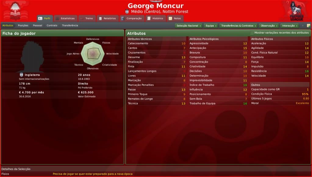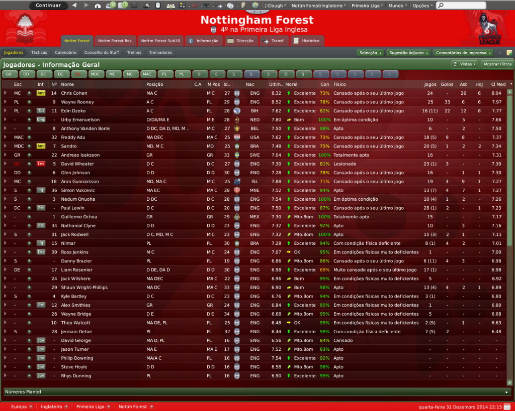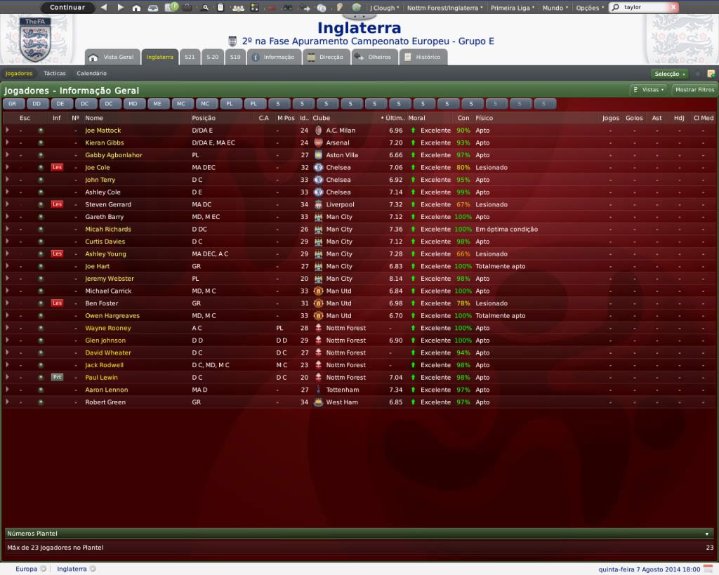 Jirimias Postado 1 de Maio 2010 Autor Denunciar Postado 1 de Maio 2010 Forest: o time mais inglês da Inglaterra Conheça os jogadores desta temporada. Não poderia existir momento mais oportuno em transformar o Nottm Forest em um time mais inglês possível como este.Apesar de uma razoável campanha no Mundial da Fifa (Final:França2x1Brasil), que rendeu ao país o 3º lugar, ficou evidente que era necessário renovar o quadro da seleção, mas para isso mais que uma vontade de um treinador, teria que haver uma vontade dos clubes em se empenharem em revelar ingleses e ter em seus plantéis mais ingleses do que qualquer nacionalidade. O Nottm quis ser pioneiro nesta questão.Com aval dos dirigentes do clube, fizemos inúmeras negociações, que foram criticadas por alguns, mas tido como um belo e ousado projeto da construção de um clube sem vergonha de se intitular: um TIME INGLÊS. Coincidentemente, as coisas fluíram de tal maneira que a possiblidade de nacionalizar o futebol foi ainda mais fortalecida com um convite irrecusável: treinar o English Team.(English Team antes de Clough).Alguns críticos a este trabalho apostam em uma "Nottmalização da Seleção Inglesa", mas não posso negar que acho uma absurdo que o clube bicampeão inglês não forneça a seleção uma meia dúzia de jogadores, e alguns times como Arsenal que há muito não apresenta nada de agradável aos olhos tenha 4 ou 5 jogadores na seleção.Logicamente nas temporadas passadas ter muitos jogadores do Nottm na seleção era impossível de acontecer, devido ao time ter uma grande diversidade de nacionalidades. Transferências Um time de jovens, veteranos e alguns estrangeiros (dez jogadores).Vinte e um jogadores da equipe principal são ingleses, alguns jogadores já consagrados, outros começando a buscar seu espaço e um monstro do futebol inglês: Wayne Rooney, que terá a missão de fazer a torcida do Nottm esquecer Cardozo.Este é o time: GOLEIROS Guilhermo Ochoa MEX Alex Smithies ING Andreas Isaksson SUE LATERAIS Liam Rosenior ING Urby Emanuelson HOL Anthony Vanden Borre BEL Glen Johnson ING Nathanial Clyne ING Wayne Bridge ING ZAGUEIROS Steve Turner ING Peter Hylton ING Paul Lewin ING David Wheater ING Kyle Bartley ING Nedun Onuhoa ING MEIO-CAMPO (DEFESA) Aaron Gunnarsson ISL Sandro BRA Jack Rodwell ING MEIO-CAMPO (ATAQUE) Chris Cohen ING George Moncur ING Ross JenkinsING Simom Vukcevic MONT Freddy Adu USA Shaun Wright-Phillips ING Jack Wilshere ING ATAQUE Nilmar BRA Edin Dzeko BOS Danny Brazier ING Wayne Rooney ING Theo Walcott ING Jermaine Defoe ING Citar
