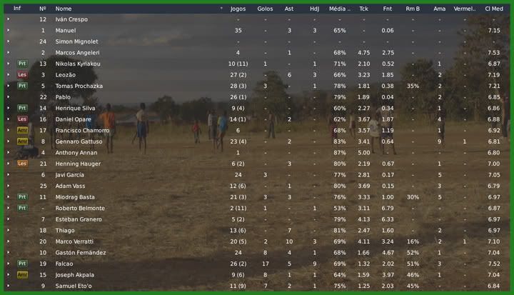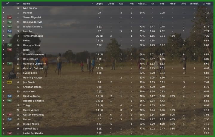 Bruno Trink Postado 25 de Maio 2010 Autor Denunciar Postado 25 de Maio 2010 Rapaz, esse Annan aí é um dos melhores meias defensivos do jogo. Gostei bastante da contratação dele. E que acabe com o Lyon, odeio eles! Sempre que posso tento contratar o Annan, é um puta cão de guarda. Bem que eu queria acabar com o Lyon... :( Fiquei mais um tempo fora é tu contrata assim tão bem e ainda faz uma grande campanha! Gostei muito do Annan, evoluiu seus melhores atributos iniciais, será um monstro na marcação. Granero também é um bom jogador. Na UCL está bem de mais, e pode passar pelo Lyon! :specool: Aos poucos, estou conseguindo montar um Novelda a nível das melhores equipes do mundo. Falta um pouco ainda, mas acho que mais umas duas temporadas estaremos lutando de igual para igual. Citar