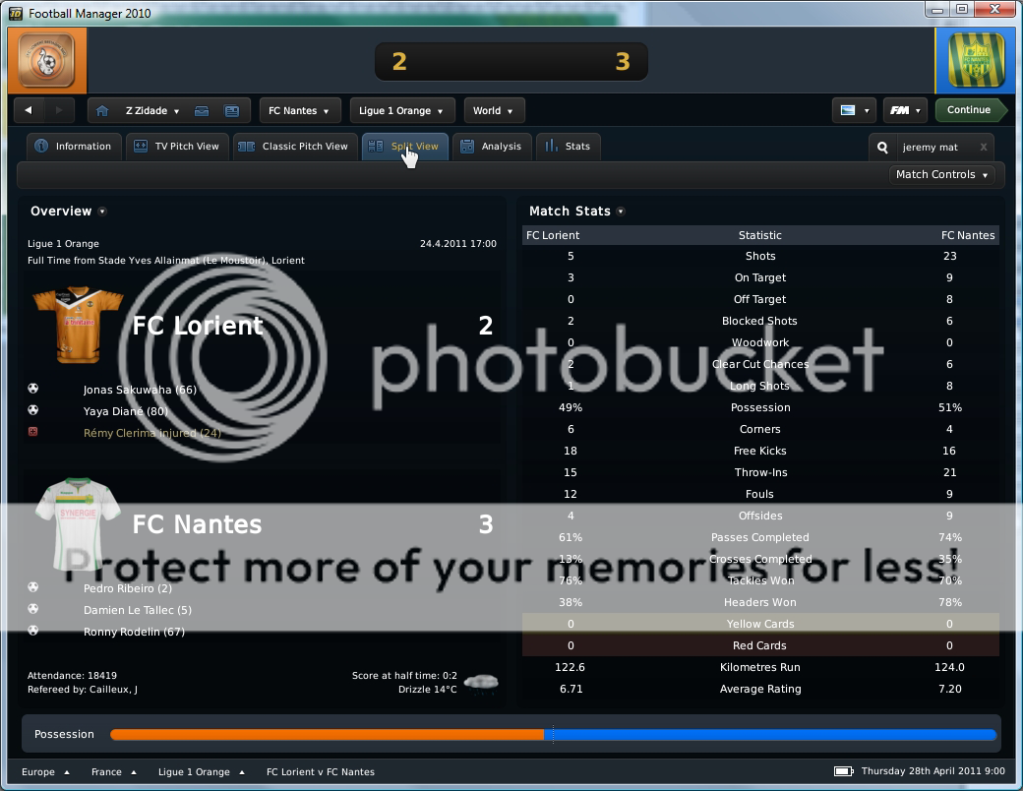Seo Beraldo Postado 2 de Junho 2010 Denunciar Postado 2 de Junho 2010 Nantes, 1 de Maio de 2011 Era hora de enfrentar o PSG, o confronto direto que poderia decidir de vez quem terminaria a temporada em segundo lugar. Jogando em casa, estava determinado a vencer. Jogamos muito ofensivamente, conseguimos uma enorme quantidade de chances de marcar, porem a grande maioria de longa distancia, e estas não foram tão bem. A partida terminou empatada, e ambas equipes fizeram sua parte, mas o domínio de posse de bola foi bem maior para o time visitante. Com este empate, nada mudou na atual colocação, seguimos em segundo com o PSG na cola. Infelizmente não deu pra segurar o Bordeaux. Jogamos mal no primeiro tempo, erramos passes, perdemos o controle do meio de campo, e com Le Tallec muito bem marcado, não fizemos nada nos 45 minutos iniciais. Na volta do segundo tempo, Plasil abre o placar, e então o Bordeaux aproveitando a vantagem em jogar em casa, se fechou, e nos jogando mal, não conseguimos mudar a cara do jogo. Pior ainda, Darbion entrara no intervalo no lugar de Makiavala, e aos 50 minutos, Pedro Ribeiro e Florenzi entram nos lugares de Boghossian e Ganso, três substituições queimadas. Foi ai que Darbion teve de sair lesionado, me deixando terminar a partida com 10 homens em campo. É não deu, e o PSG venceu e tomou o segundo lugar que tanto seguramos no decorrer da temporada. Enfrentamos o Mônaco com a moral um pouco baixa, não queríamos estar em terceiro. Jogamos em casa, e sofremos uma enorme pressão por parte dos visitantes. Tivemos poucas chances de marcar, e novamente culpo a chuva por nosso fraco desempenho. Mas a verdade é que realmente a moral caiu após os resultados anteriores. Mesmo jogando mal, nossa equipe conta com ótimos jogadores, e no final da partida, brilhou a estrela de Matic. Que pegou a bola viu espaço para penetrar, entrou na área e chutou baixo para nos dar a vitoria. A vitoria contra o Mônaco dos deixou mais animados, e entramos em campo determinados e jogando o “Jeu à la Nantaiese” veloz. Mesmo debaixo de chuva, nossas jogadas saíram. Pedro Ribeiro abriu o placar logo aos dois minutos de jogo com uma boa enfiada de bola de Le Tallec. Minutos depois, eu já comemorava gol de Candreva em chute cruzado, mas o goleiro adversário defendeu. Sorte nossa de Le Tallec esta no lugar e hora certo para marcar nosso segundo gol. Com a vantagem de dois gols, passei a fazer um pouco de experiência. Tais como jogar com três zagueiros. E pra falar a verdade, o resultado foi o que vimos, dois gols do Lorient na volta do intervalo. Ambos em falha de marcação. Organizei minha linha defensiva de três com 2 bloqueadores (Djourou e Dervite) e Lukovic como cobridor. Deu tudo errado. Acho que os dois D não são bons suficientes para bloquear, pois saíram em momentos errados permitindo gols dos adversários. Mas eles não chegaram a empatar a partida, pois Ronny Rodelin que entrou no lugar de Pedro Ribeiro marcou nosso terceiro, após receber uma boa bola de Ganso. Após nossos recentes fracassos diante do Lyon, preparei a equipe para o pior, jogar totalmente na retranca, apenas no chutão para frente, sem buscar contra ataques concretos. A idéia era chutar bolas pra frente e Boghossian teria de segurar a bola por lá do jeito que desse. Para minha alegria, em um momento de lucidez, Annan lançou Makiavala, que estava em posição irregular, e o juiz não parou a jogada. O Luso-Angolano aproveitou e marcou. No segundo tempo, o Lyon que dominou por toda a partida chegou ao empate ao criar uma fulminante jogada de ataque pelo lado esquerdo, o cruzamento atravessou toda área e caiu as pés de Kalou que marcou. Não foi um mau resultado, mas já estava certo que nos terminaríamos a temporada em terceiro lugar. Finalmente saiu a definição do caso Lukovic! Após inúmeras tentativas, o sérvio finalmente aceitou minha proposta por permanecer no elenco na próxima temporada. Com isso pagarei o combinado de €3 milhões por seu passe, e seu salário será de €130 mil euros. Caro, mas acredito que valera a pena. Com apenas três partidas restantes, não há mais chances de ser campeão, tão pouco de ficar sem a vaga da UCL. Em outras palavras, perdemos todas três partidas e terminamos a temporada em terceiro lugar ou torcemos pelo PSG ser derrotado três vezes e vencendo nossos compromissos e garantimos o segundo lugar. La embaixo, a situação do Toulouse é ruim, e o clube corre sérios riscos de ser rebaixado. Bom, entramos na reta final da competição de cabeça erguida sabendo que fizemos uma ótima temporada.